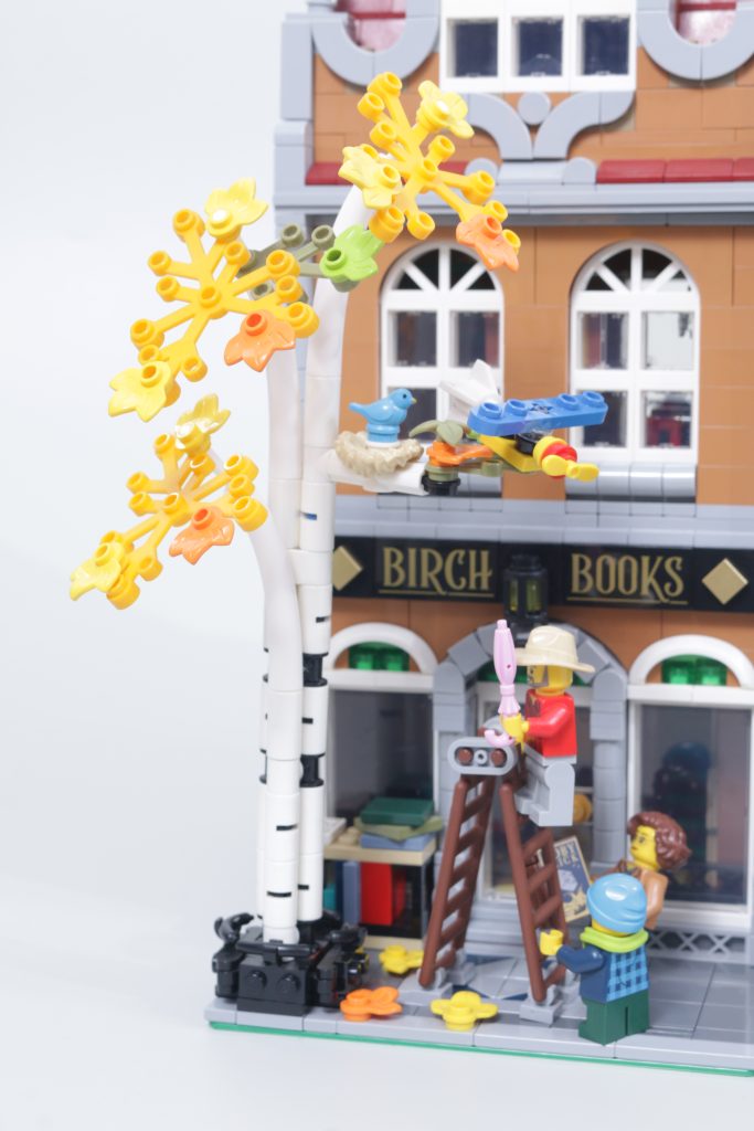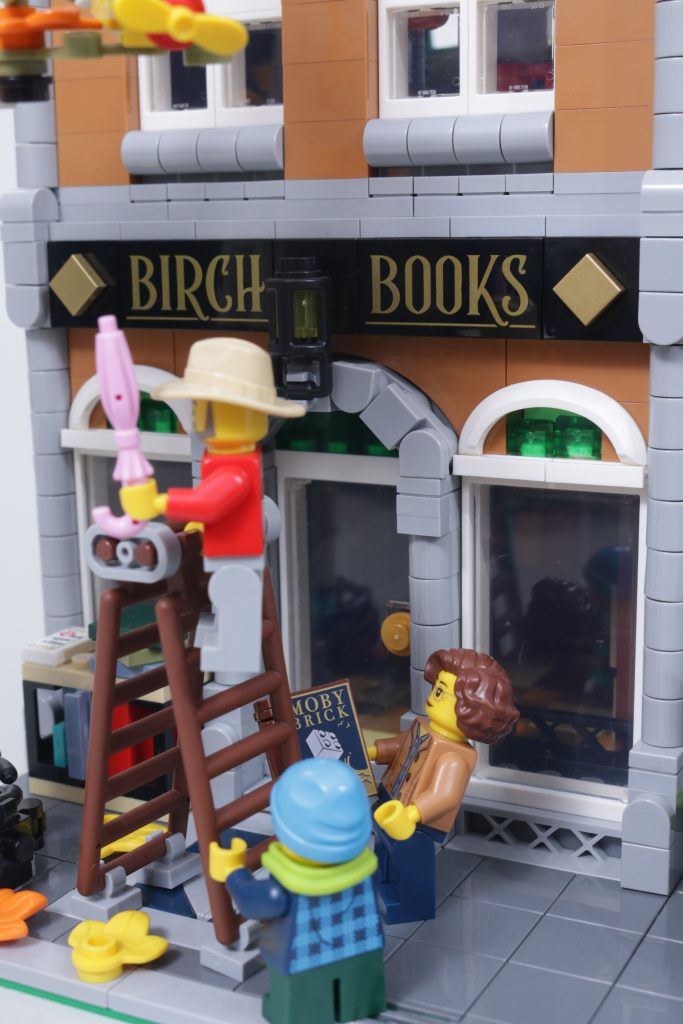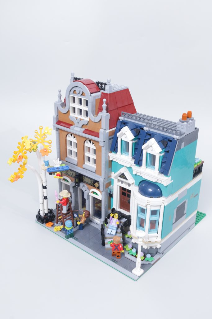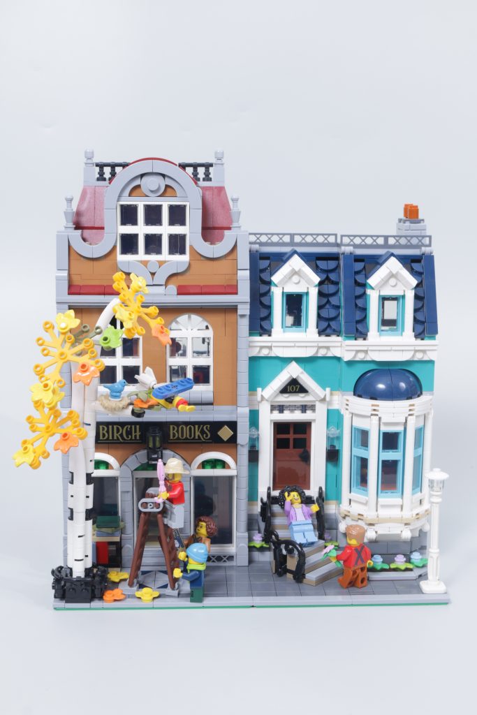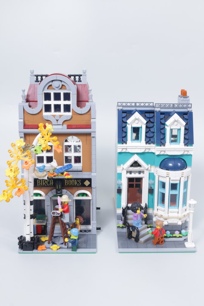 Blickt man vier Jahre in die Zukunft zum Set 10270 „Buchhandlung“, wird deutlich, welchen Unterschied die Vielfalt an Teilen und Farben für LEGO-Designer ausmacht. Gleichzeitig erkennt man aber auch viele Ähnlichkeiten im Detailgrad und dessen Umsetzung. Es werden neue Techniken und Weiterentwicklungen präsentiert, doch die Verbindung zwischen 10270 und 10251 ist recht gering.