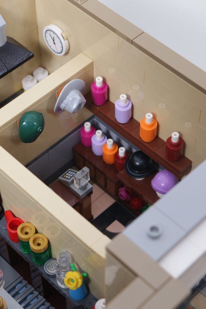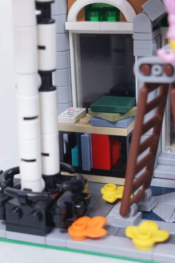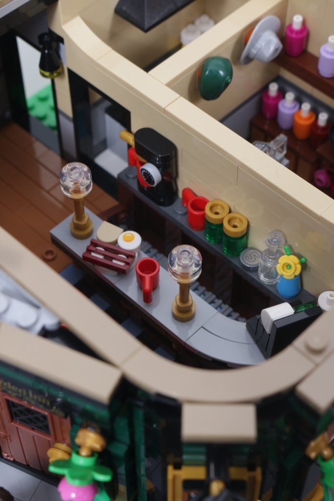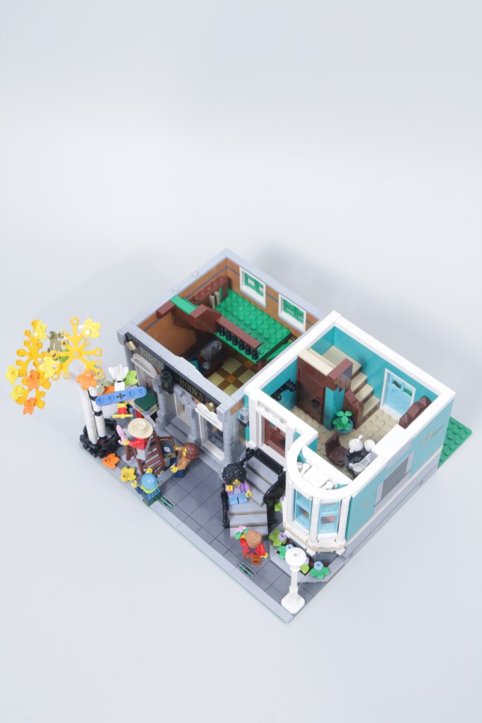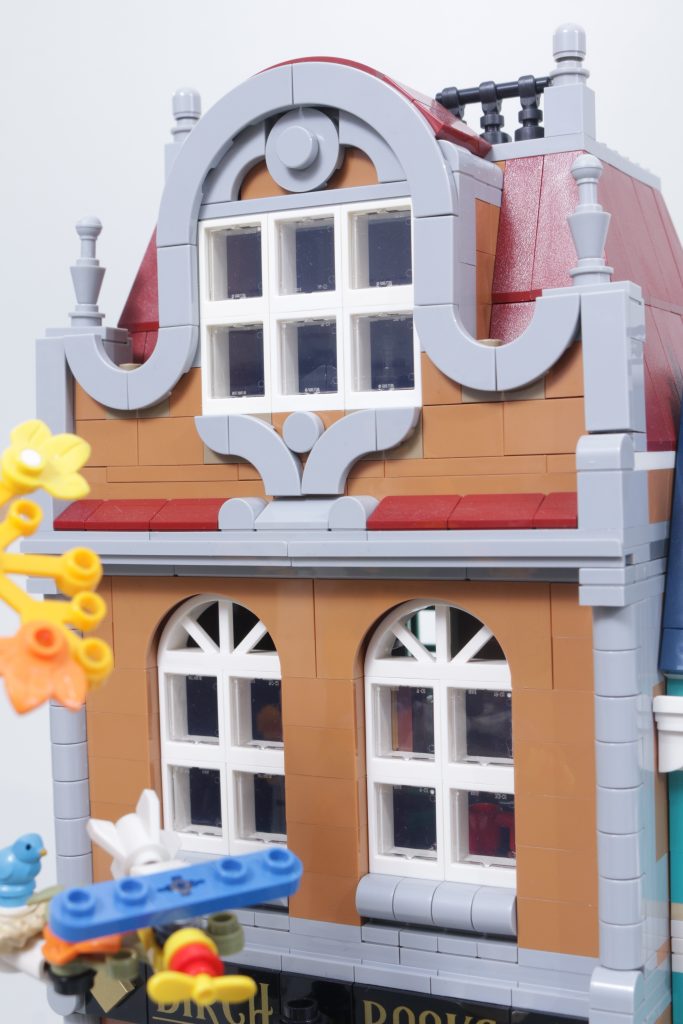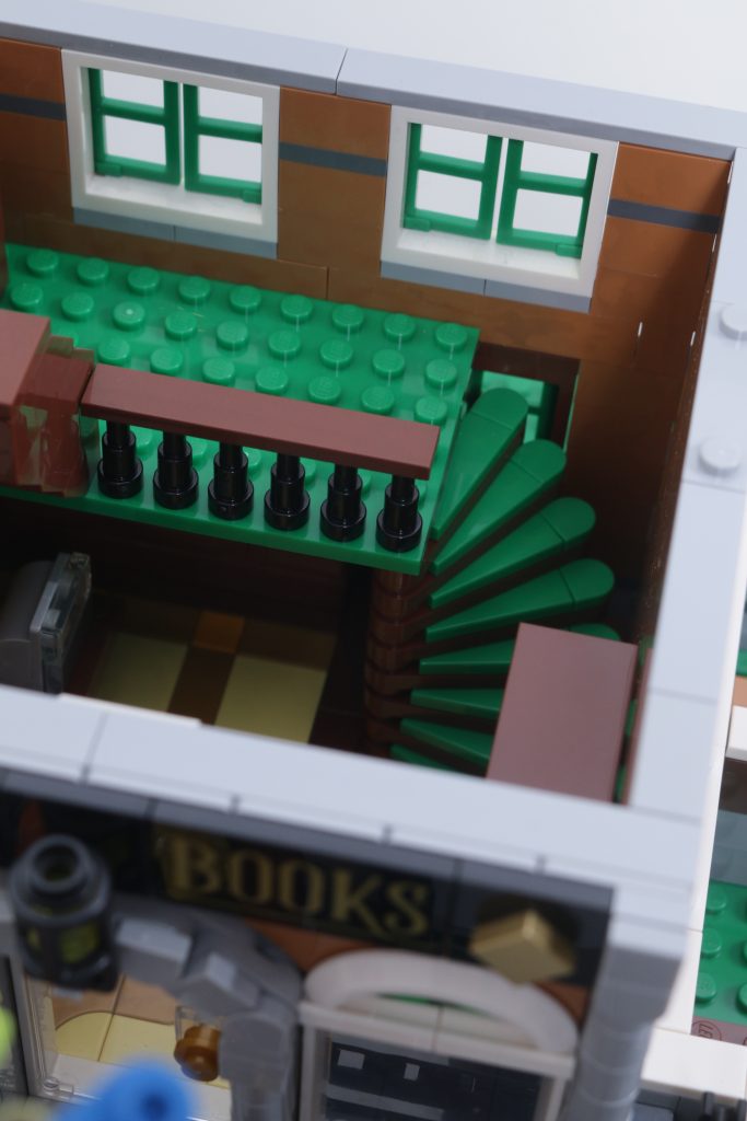 Blickt man vier Jahre in die Zukunft zum Set 10270 „Buchhandlung“, wird deutlich, welchen Unterschied die Vielfalt an Teilen und Farben für LEGO-Designer ausmacht. Gleichzeitig erkennt man aber auch viele Ähnlichkeiten im Detailgrad und dessen Umsetzung. Es werden neue Techniken und Weiterentwicklungen präsentiert, doch die Verbindung zwischen 10270 und 10251 ist recht gering.