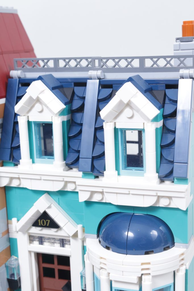 Bei genauerem Hinsehen erkennt man die Details hinter den auffälligen Bereichen und versteht, warum dieses Modulhaus seinen Vorgängern einen Schritt voraus ist. Es weist keinerlei sichtbare Mängel, Lücken oder Unterbrechungen auf, und selbst die einfachsten Details des Modells sind mit höchster Präzision ausgeführt. Dieses Modulhaus ist sowohl groß als auch komplex – sein Aufbau erfordert Zeit und Sorgfalt, belohnt aber jeden Schritt.