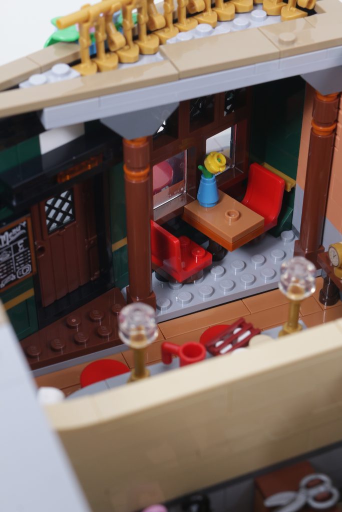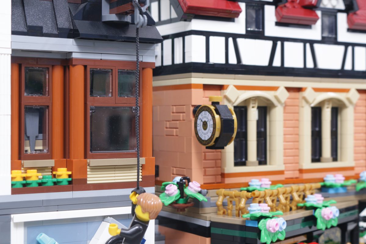 Das Set 10350 Tudor Corner hingegen stellt einen deutlichen Fortschritt dar. Zwar bleibt es dank des gleichen Formats und der einheitlichen Gestaltung weiterhin Teil der Modular Buildings Collection, doch besticht dieses Set durch deutlich mehr Details – sowohl innen als auch außen. Techniken, Teileverwendung und Farben sind wesentlich weiterentwickelt, was dem Set und der gesamten Kollektion zugutekommt.