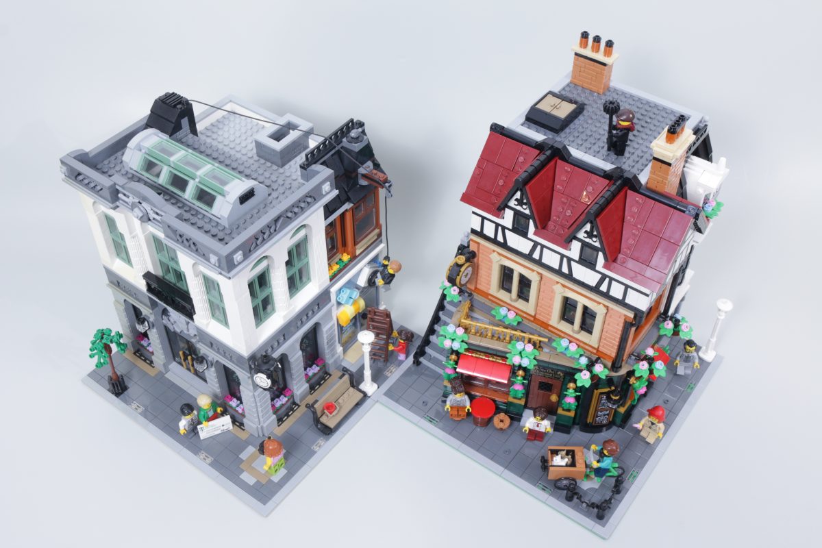 Am besten lässt sich die Weiterentwicklung von 10350 Tudor Corner verdeutlichen, indem man es mit zwei anderen modularen Gebäuden vergleicht – 10251 Brick Bank aus dem Jahr 2016 und 10270 Bookshop aus dem Jahr 2020 – wobei klargestellt wird, dass wir beide Gebäude sehr schätzen und sie nicht vergleichen, um sie zu kritisieren.