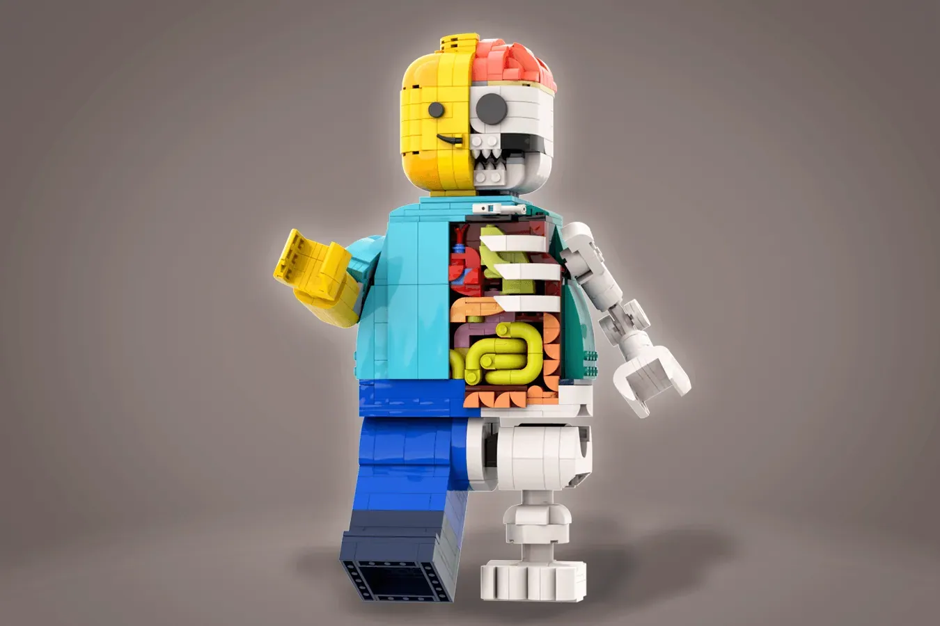 Diese pädagogische Kreation schlägt ein ähnliches Konzept vor Anatomie, was am abgelehnt wurde LEGO Ideas und wurde dann im BrickLink Designer-Programm archiviert und zeigt eine Minifigur, wobei die Hälfte der hochskalierten Figur ein Skelett und seine inneren Organe zeigt. Zum Vergleich sind auch ein Skelett und eine Standard-Minifigur enthalten.