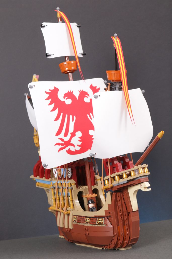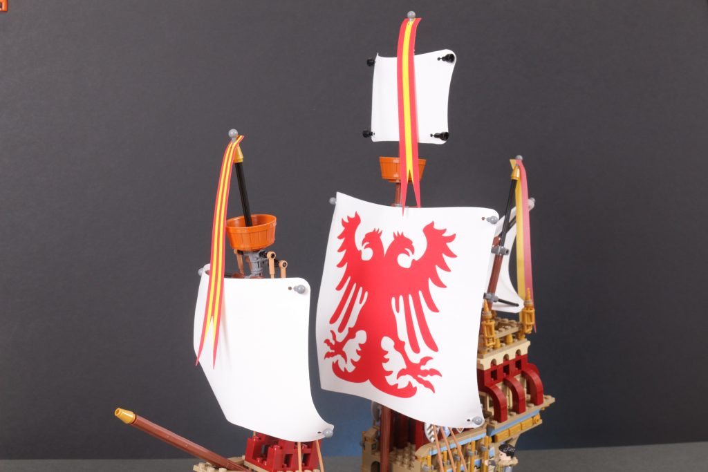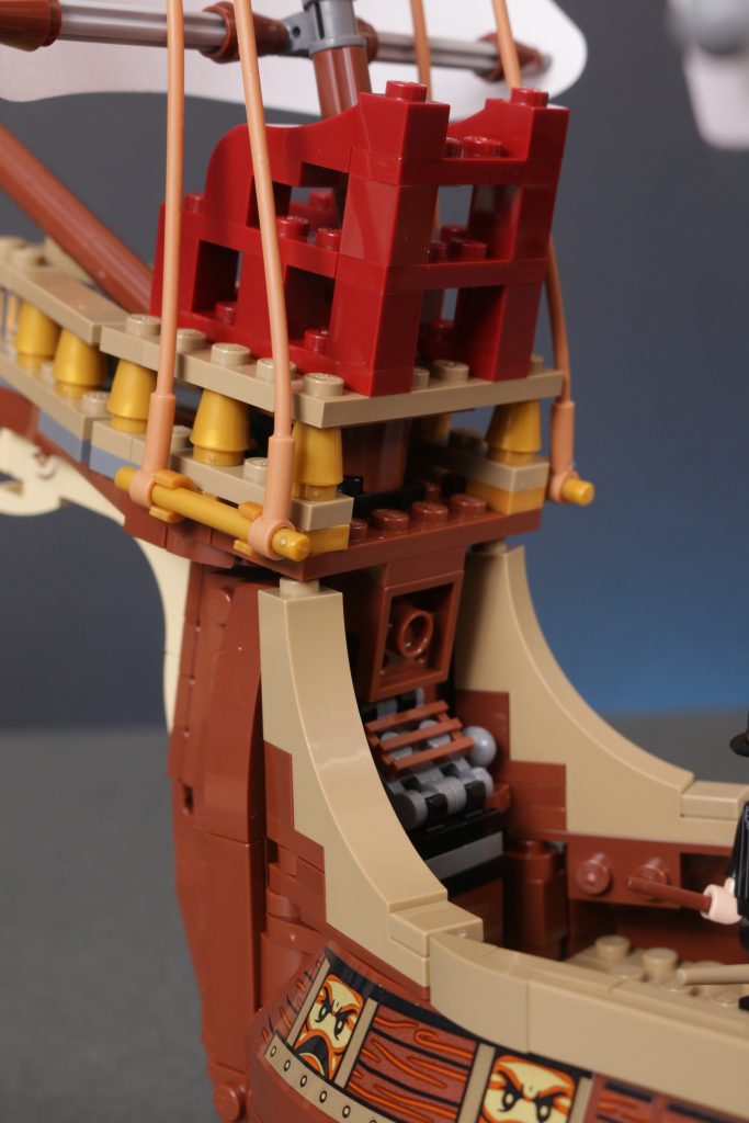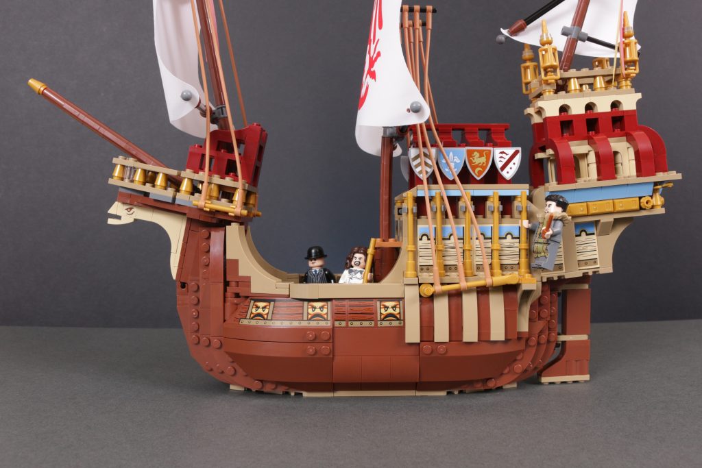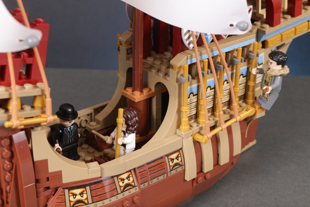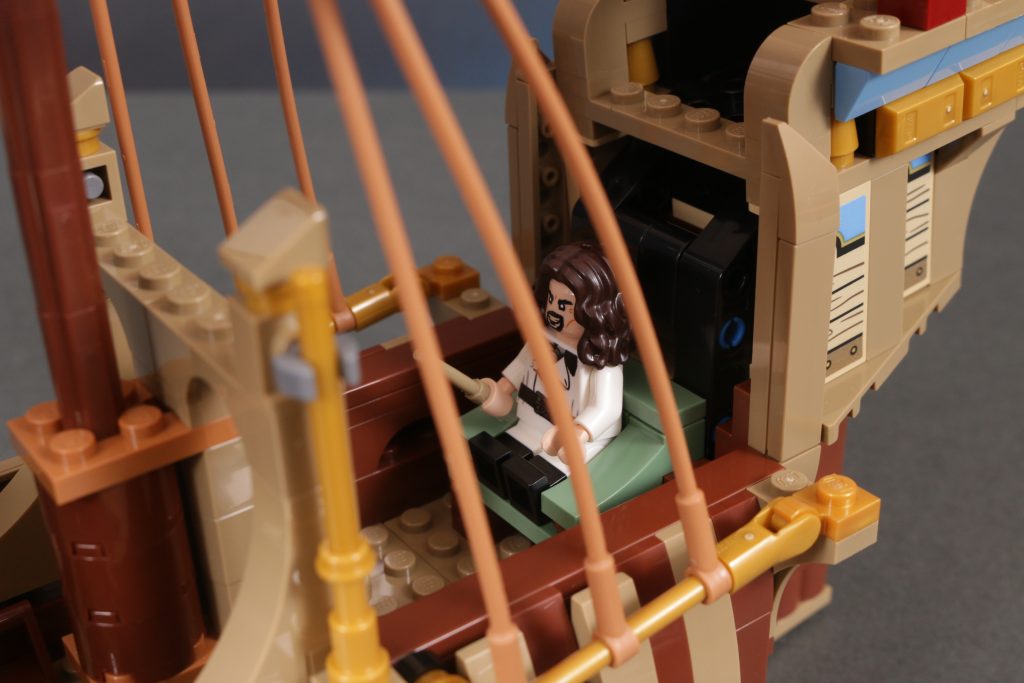 Quer über dem Schiff ist ein wenig Platz, um einige der mitgelieferten Minifiguren zu platzieren, allerdings nicht zu viel. Angesichts der fragileren Aspekte des Designs, der sehr ansprechenden Erscheinung des Schiffs und der höheren Altersempfehlung hat man stark das Gefühl, dass das Modell eher zum Ausstellen als zum Spielen gedacht ist.