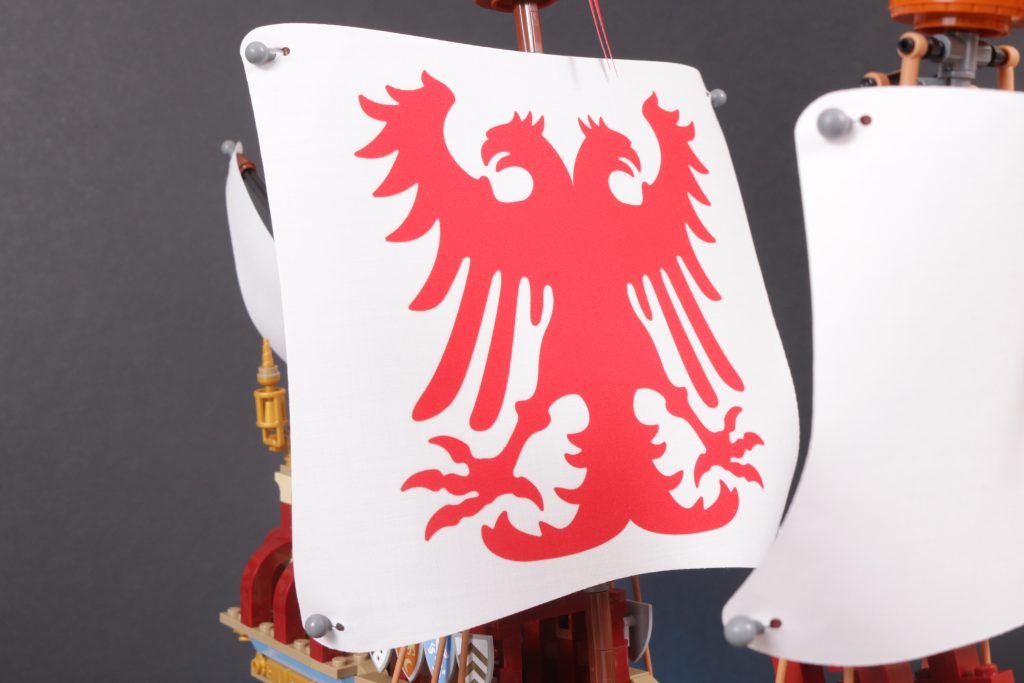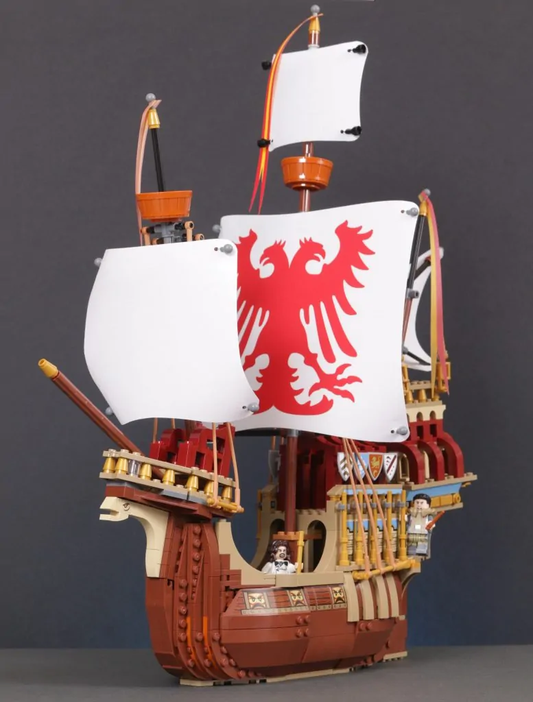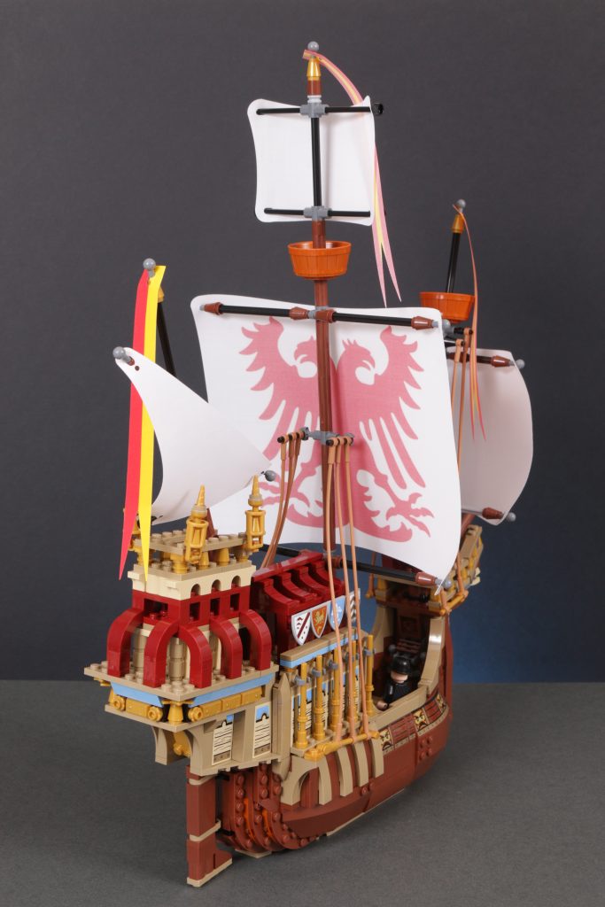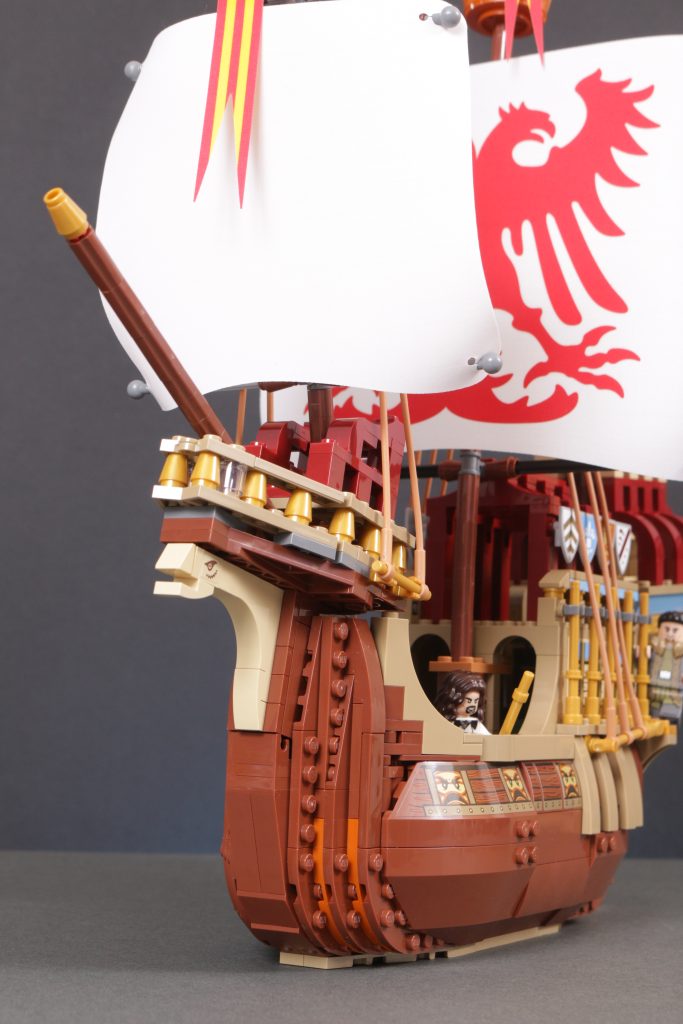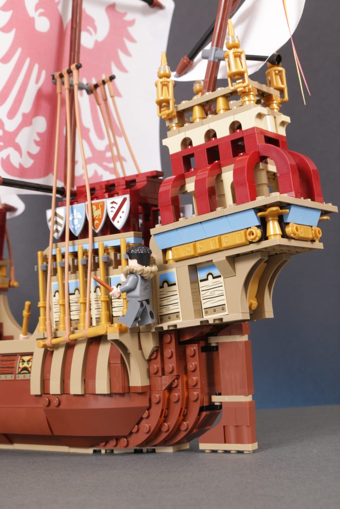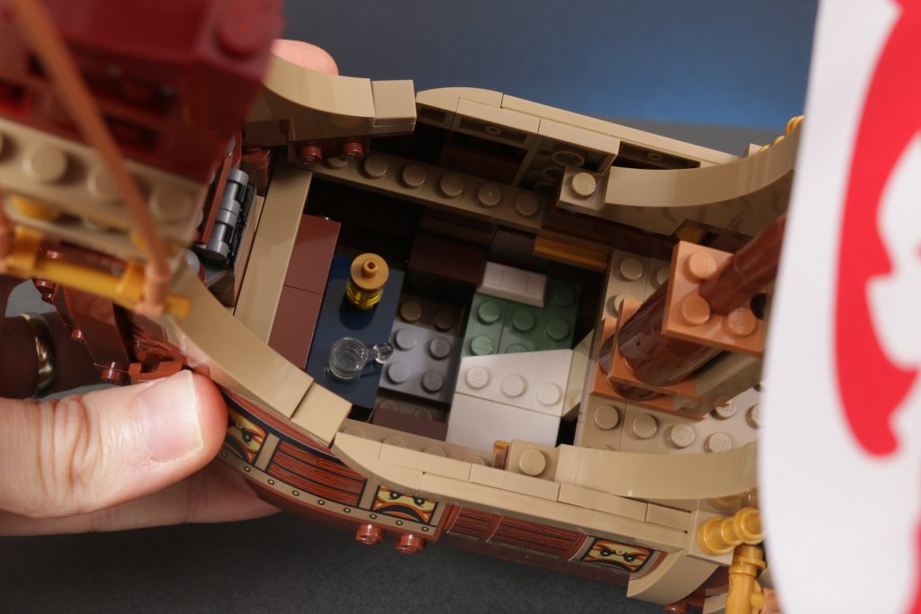 Quer über dem Schiff ist ein wenig Platz, um einige der mitgelieferten Minifiguren zu platzieren, allerdings nicht zu viel. Angesichts der fragileren Aspekte des Designs, der sehr ansprechenden Erscheinung des Schiffs und der höheren Altersempfehlung hat man stark das Gefühl, dass das Modell eher zum Ausstellen als zum Spielen gedacht ist.