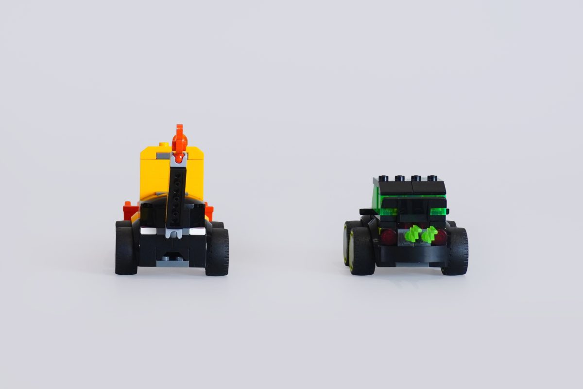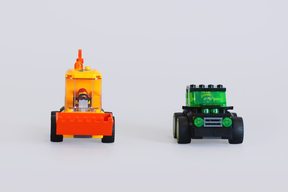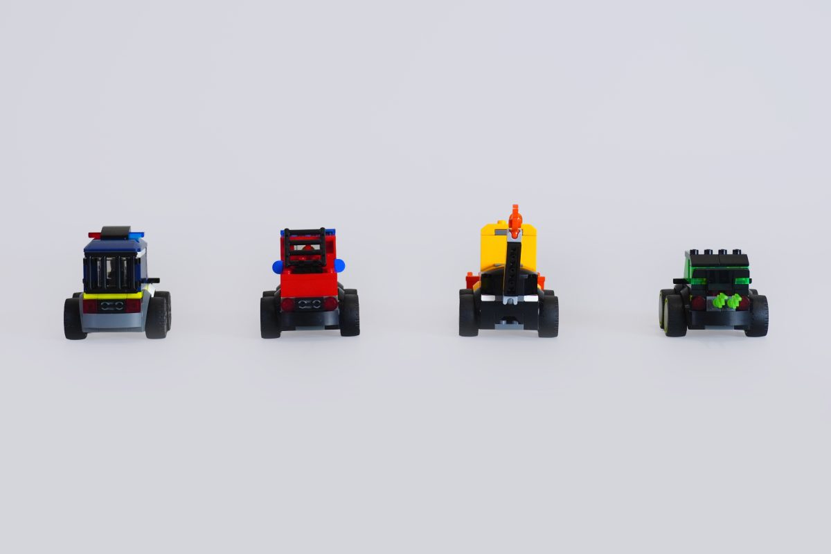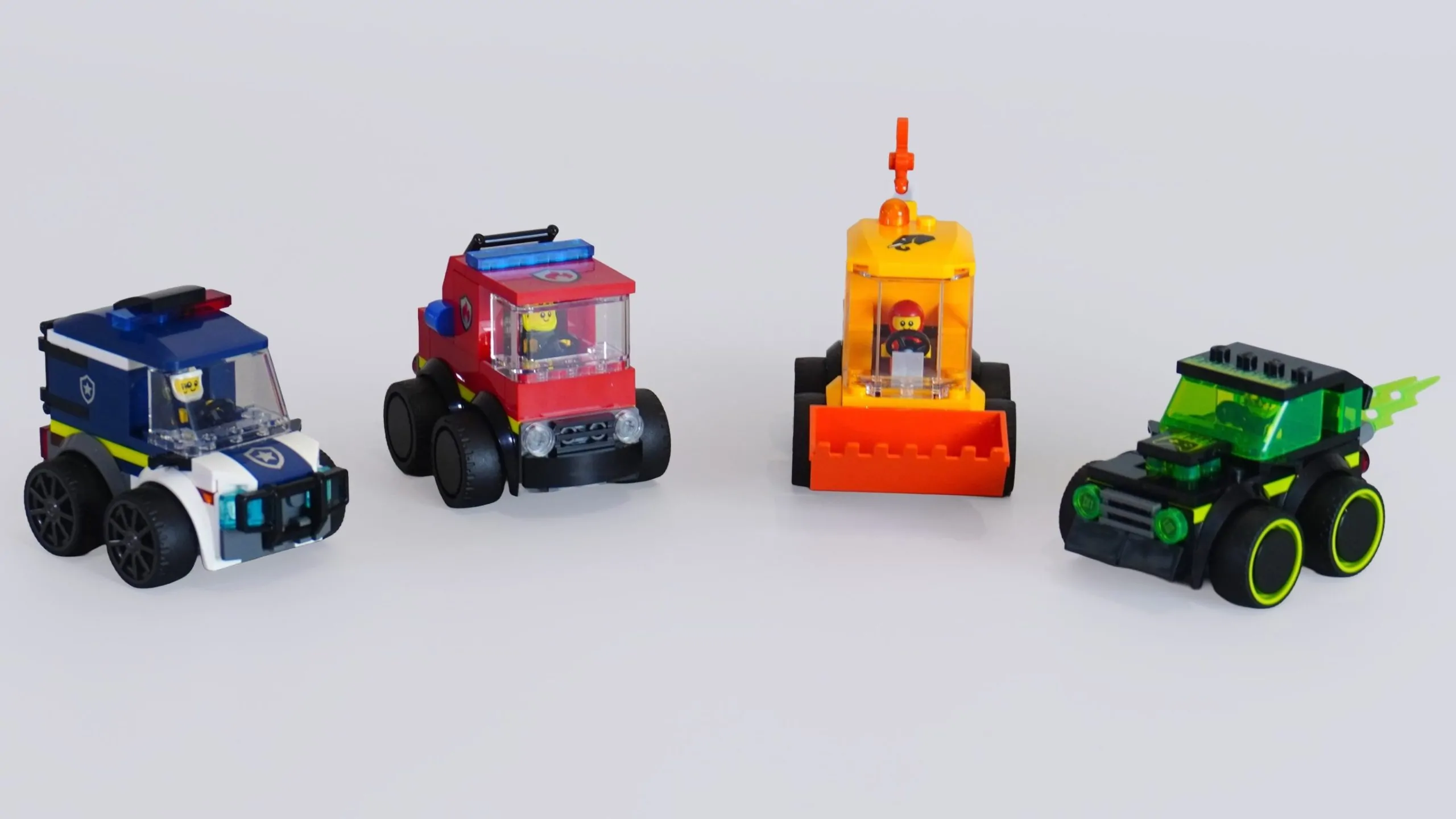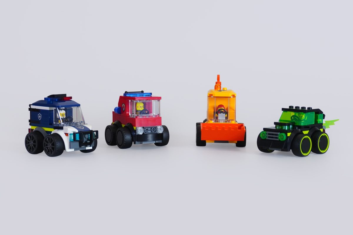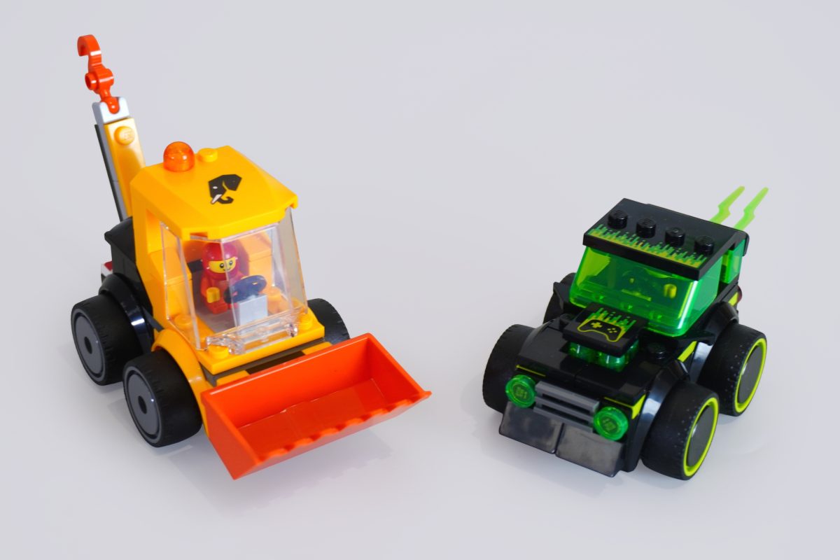 Die Form und Haptik dieser Fahrzeuge sind einfach herrlich. Sie haben ein kantiges, blockartiges Design mit großen Rädern und einfachen Fahrerkabinen. Sie sollen nicht realistisch wirken, aber sie sehen unbestreitbar unglaublich spaßig aus. Man spürt fast eine gewisse Nostalgie für das klassische LEGO-Design – nicht unbedingt einen konkreten Bezug zur Vergangenheit, aber irgendetwas an den kleinen Kartons, der begrenzten Teileanzahl und den kantigen Formen erinnert an vergangene Zeiten, als das LEGO-System noch viel simpler war.