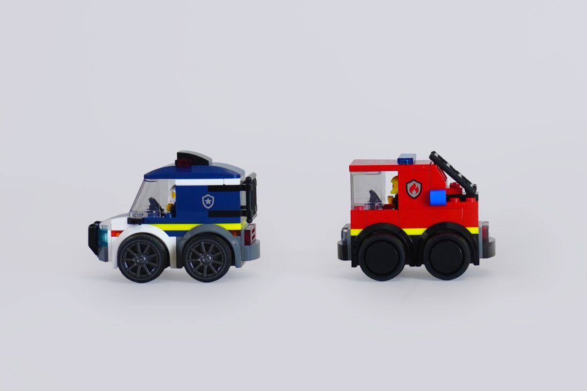 Das Feuerwehrauto 60482 ist noch weniger aerodynamisch – man kann sich kaum merken, wo vorne ist, und viele jüngere LEGO-Fans werden es sicher lieber rückwärts herumfahren, weil das logischer erscheint. Trotzdem ist die schräge Leiter ein Highlight des Sets, vor allem, weil sie für zusätzliche Spielszenarien abgenommen werden kann.