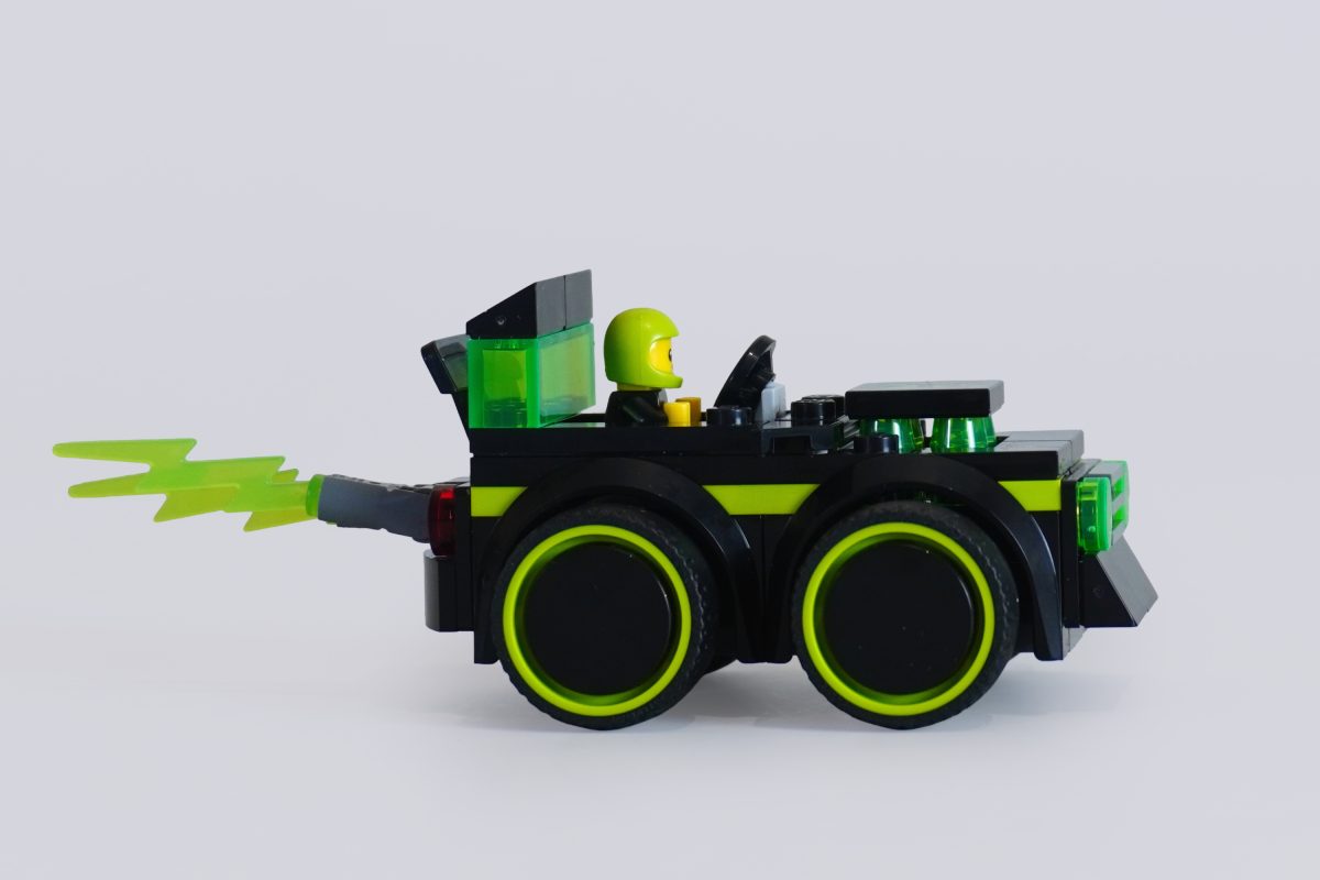 Dennoch ist es mit Abstand das coolste dieser UmBauenen, und sein bulliges Design erinnert an einen verkleinerten Dodge Charge – insbesondere dank des hochgesetzten Kompressors, der ihm fast schon einen grünen „Fast & Furious“-Touch verleiht. Der Wagen schießt außerdem Blitze aus seinem Auspuff, warum auch nicht?