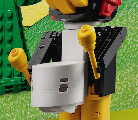 Drei der 40506 LEGO Fabuland Tribute-Tiere haben ihre eigenen Instrumente aus Steinen, eines besteht jedoch aus einigen sehr bekannten Teilen. Die Spitze jedes von Joe Crows Trommelstöcken ist tatsächlich ein gelber Minifigurenkopf – eine subtile Anspielung auf die kleinen Vettern von LEGO Fabuland.