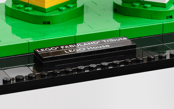 Wie bei den vier vorherigen LEGO House Exklusive Sets: Das LEGO Fabuland Tribute (40506) wird mit einem markanten schwarzen Sockel geliefert, auf dem der Rest des Modells montiert wird. Ein weiteres bekanntes Detail dieser Veröffentlichungen ist ein gedrucktes Namensschild, das an der Vorderseite des Modells angebracht ist.