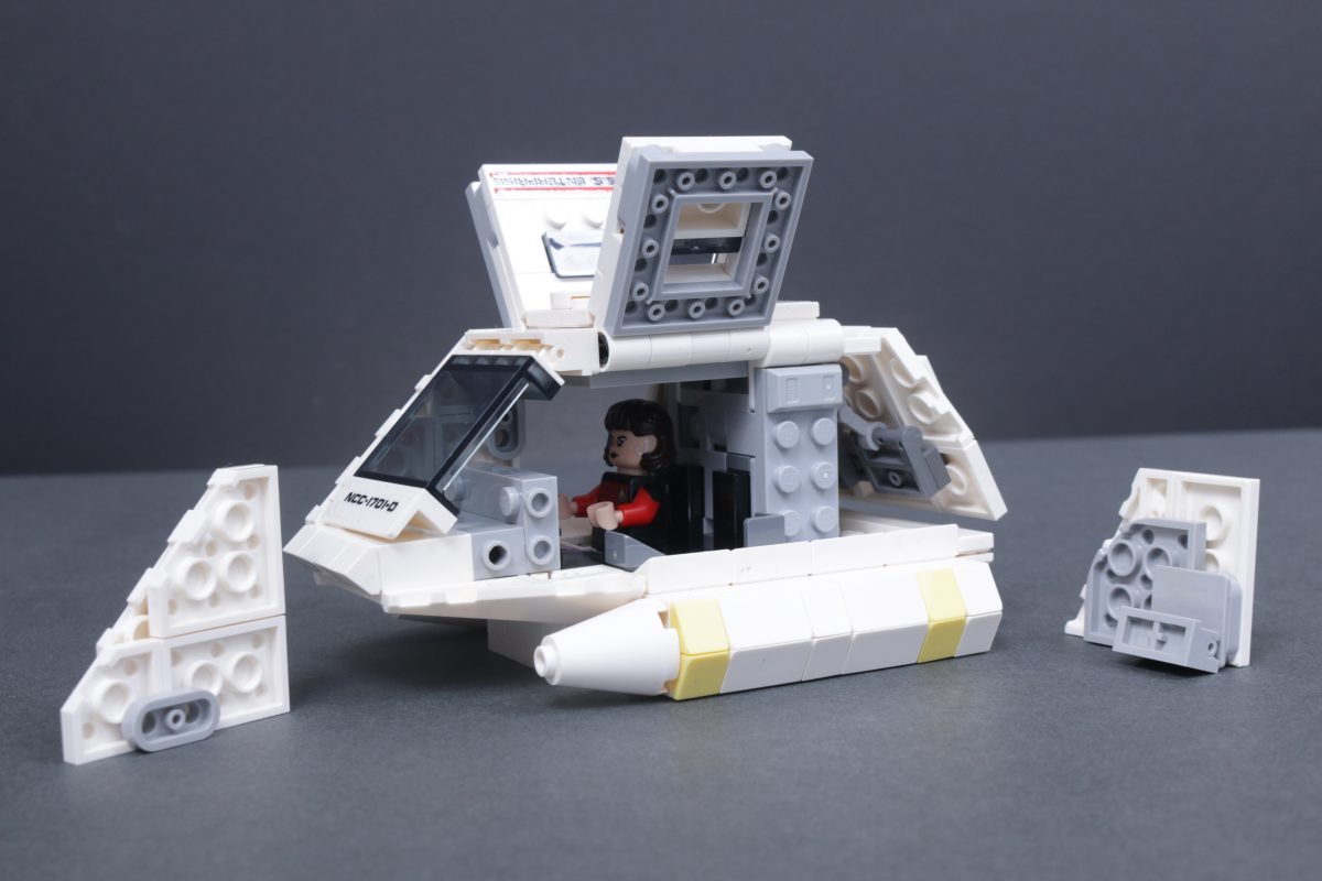 Dieses spielbasierte Geschenk ist eine hervorragende Ergänzung zum Set 10356, das sich durch sein detailreiches und durchdachtes Design auszeichnet. Es bietet zudem eine zusätzliche Verwendungsmöglichkeit für alle Minifiguren des Sets, die sonst eher ungenutzt auf dem langen Sockel vor der Enterprise stehen. Nun haben sie ein Gefährt, mit dem sie zu Expeditionen zu geheimnisvollen Planeten aufbrechen können.