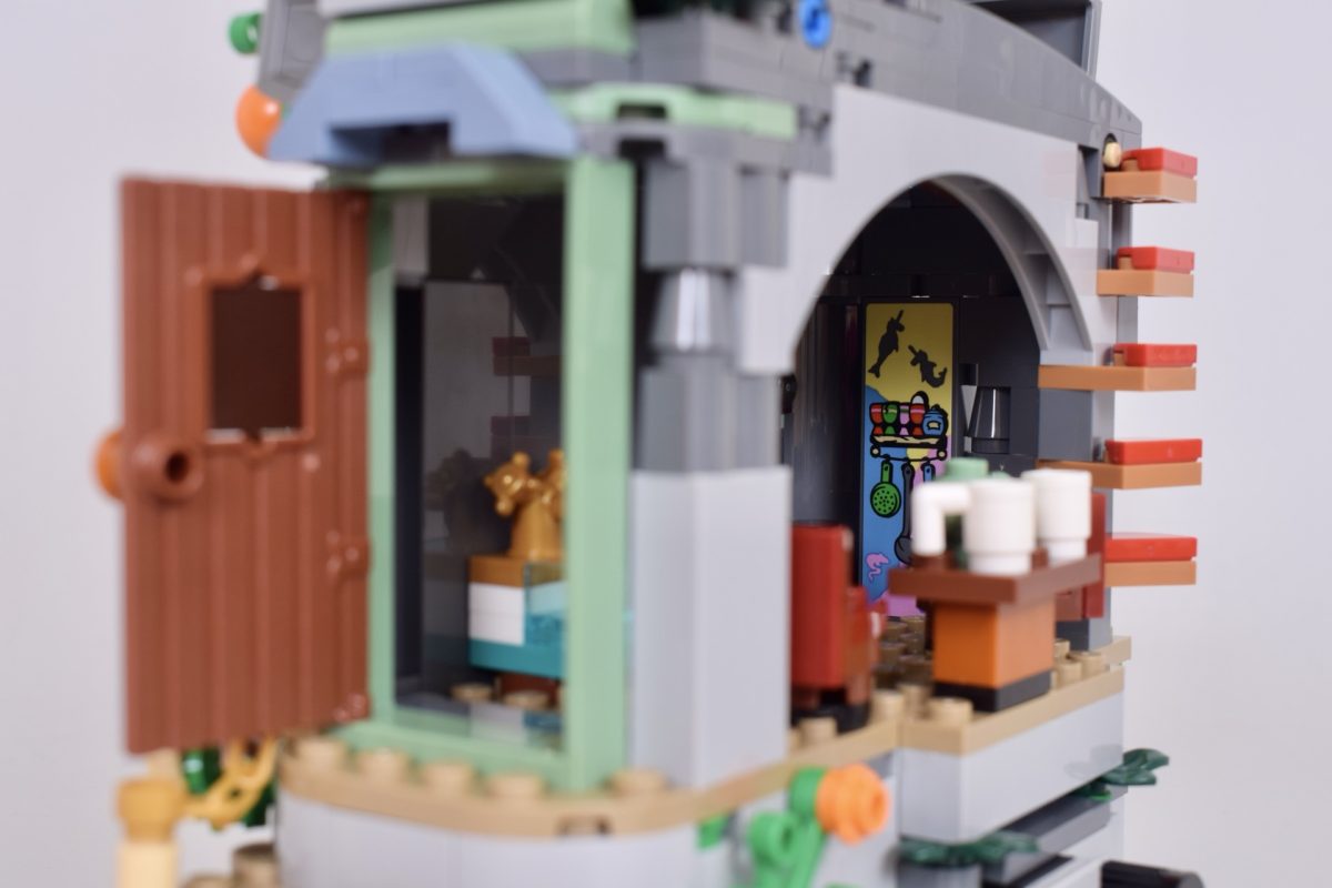 Zum Glück befindet sich der interessanteste Raum ganz oben und ist am einfachsten zugänglich. Das einprägsamste Merkmal des Hauses der Lovegoods ist Lunas Schlafzimmer, das mit goldenen Porträts all ihrer Lieben bemalt ist. FreundeEs ist ein emotionaler Moment im Buch und im Film, als Harry, Ron und Hermine es in Lunas Abwesenheit entdecken. LEGO Diese Version ist nicht ganz so detailliert, sondern wurde stattdessen als 2×2-Aufkleberkachel nachgebildet, aber sie ist eine schöne Anspielung auf Lunas künstlerische Darstellung ihrer selbst. Freunde.