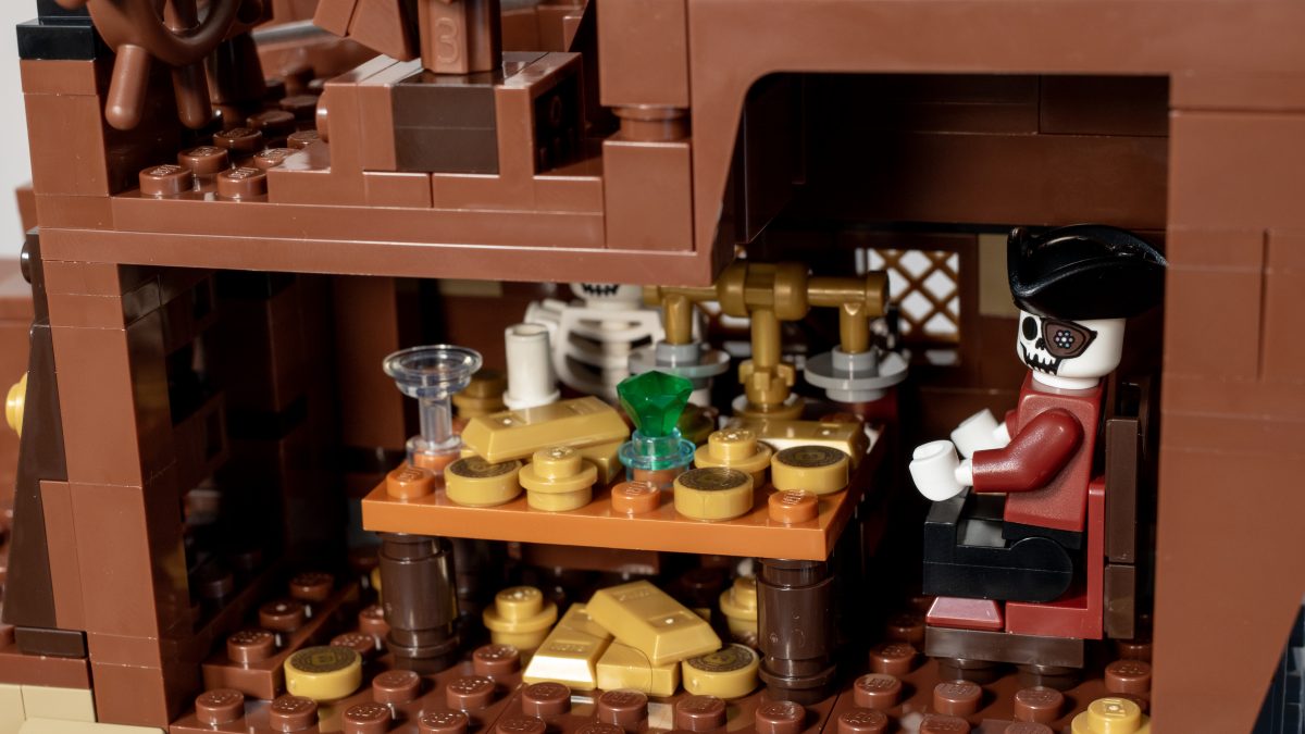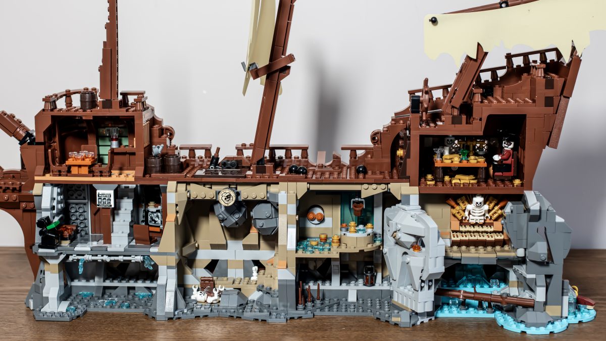 Einmal vervollständigt, 21363 Die Goonies sieht aus jedem Blickwinkel phänomenal aus. Auf der einen Seite befindet sich der stimmungsvolle unterirdische Abenteuerspielplatz voller Ostereier und Möglichkeiten zum Geschichtenerzählen mit Minifiguren. Auf der anderen Seite eine wunderschöne, ausstellungsreife Nachbildung von One-Eyed Willys Schiff – mit seinem geheimen Schatz, der im Laderaum glitzert.