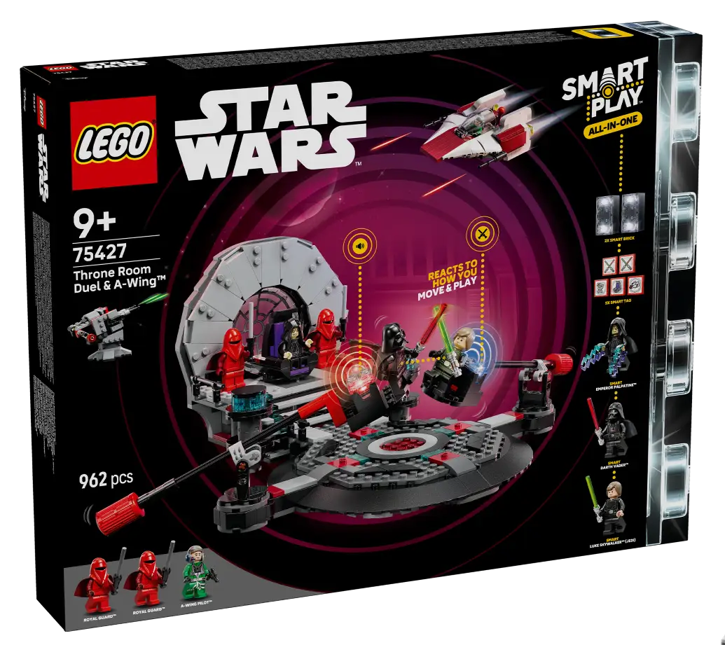 | 75427 Thronsaal-Duell & A-Flügel | £ 139.99 / $ 159.99 / € 159.99 | 962 | 2 SMART Bricks 5 SMART Tags 3 SMART Minifiguren | 1. März 2026 | Jetzt vorbestellen |