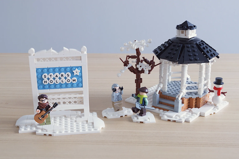 Designerin BrickinNick verrät, dass Gilmore Girls: Stars Hollow zwar als Winterdorf-Set konzipiert wurde, aber problemlos für jede andere Jahreszeit der Serie adaptiert werden könnte. LEGO Ideas Eingereicht wird eine Sammlung von Minifiguren in Form von Lorelai Gilmore, Luke Danes, Rory Gilmore, Lane Kim, Emily Gilmore, Kirk, Taylor Doose und dem beliebten Town Troubadour, der auf seiner Gitarre spielt.