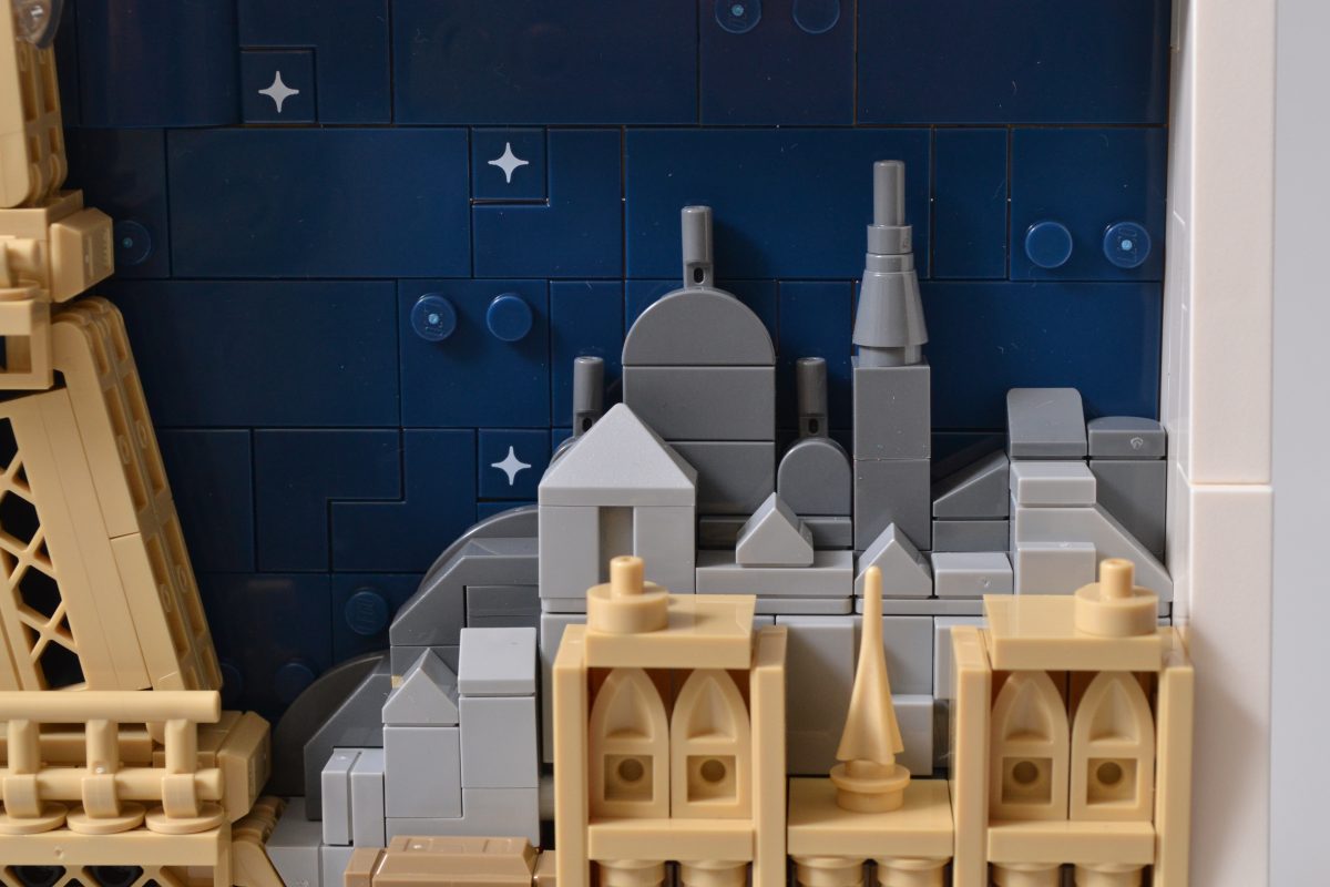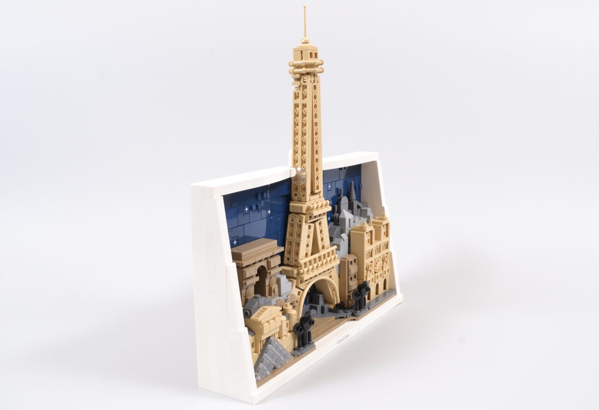 Das LEGO Architecture Das Modell versucht im Vergleich zu früheren Skylines-Versionen auch etwas Neues und bietet 21064 Paris - City der Liebe Ein Gefühl von Tiefe, das dazu führt, dass das Bauwerk eher einem dreidimensionalen Postkartenmotiv ähnelt.