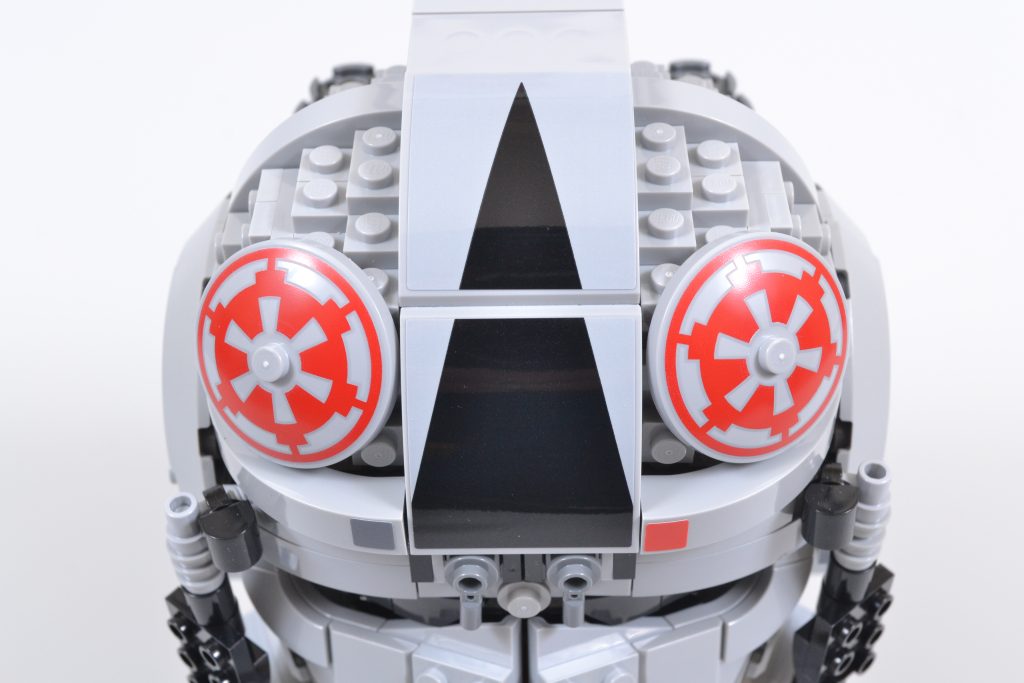 Darüber hinaus fehlen dem 75429 AT-AT-Fahrerhelm die Luftschläuche des 75274 TIE Fighter Pilotenhelms und das vordere Lebenserhaltungspaket der realen Requisite. Beides hätte das Modell zwar eher wie ein LEGO aussehen lassen, Star Wars Pleite, ihr Weglassen fühlt sich nicht wie ein allzu großer Verlust an.