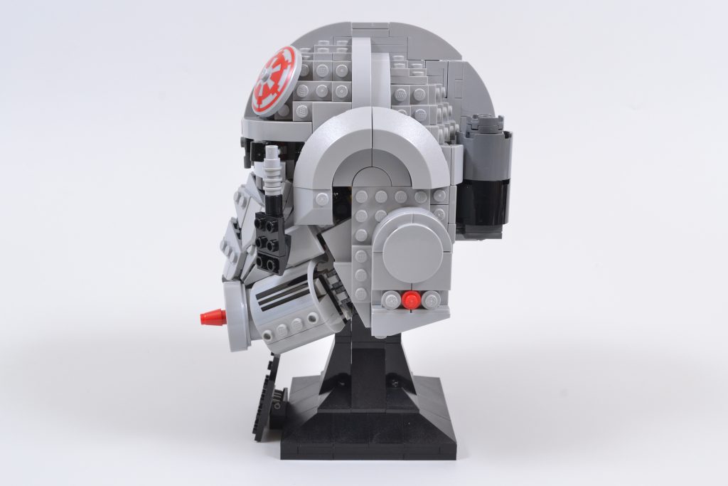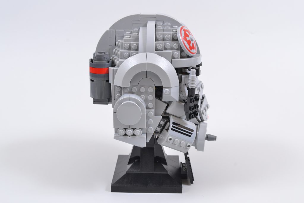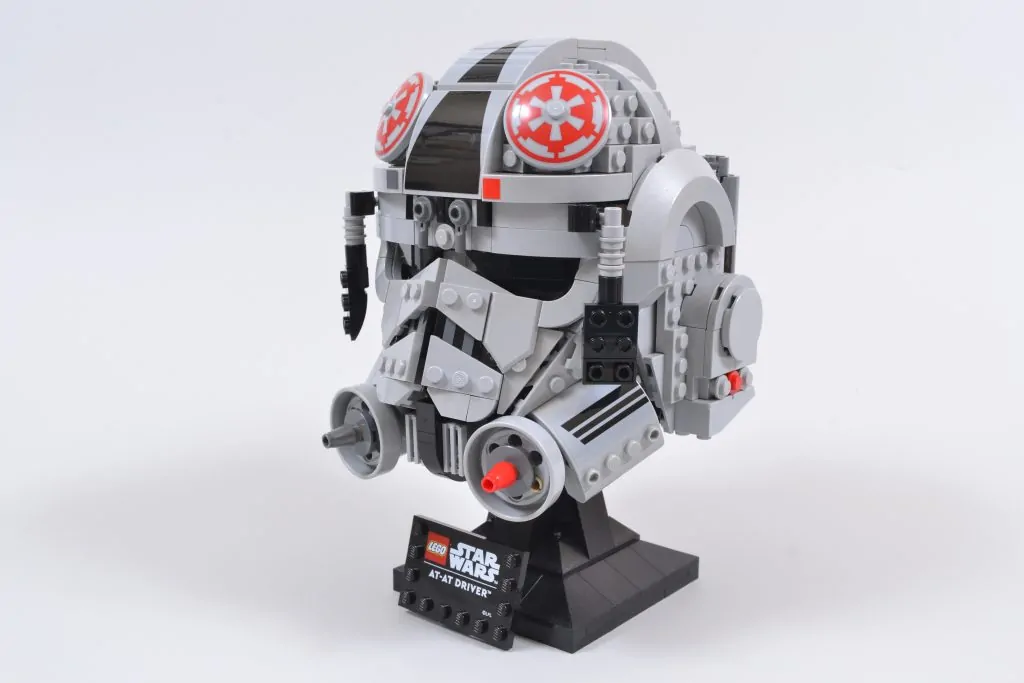 Das Ergebnis ist ein unverwechselbares und auffälliges Set, das eine wirklich authentische Darstellung der imperialen Kopfbedeckung bietet. Von den grauen Luftkanistern an der Rückseite des LEGO Star Wars Mit seiner Bauweise und dem leichten Hauch von Rot, der durch den vorderen Nasengrill bis hin zu den Konturen der schwarzen Augenlinsen und der Platzierung bestimmter Greeblies sticht, kann der 75429 AT-AT-Fahrerhelm nur beeindrucken.