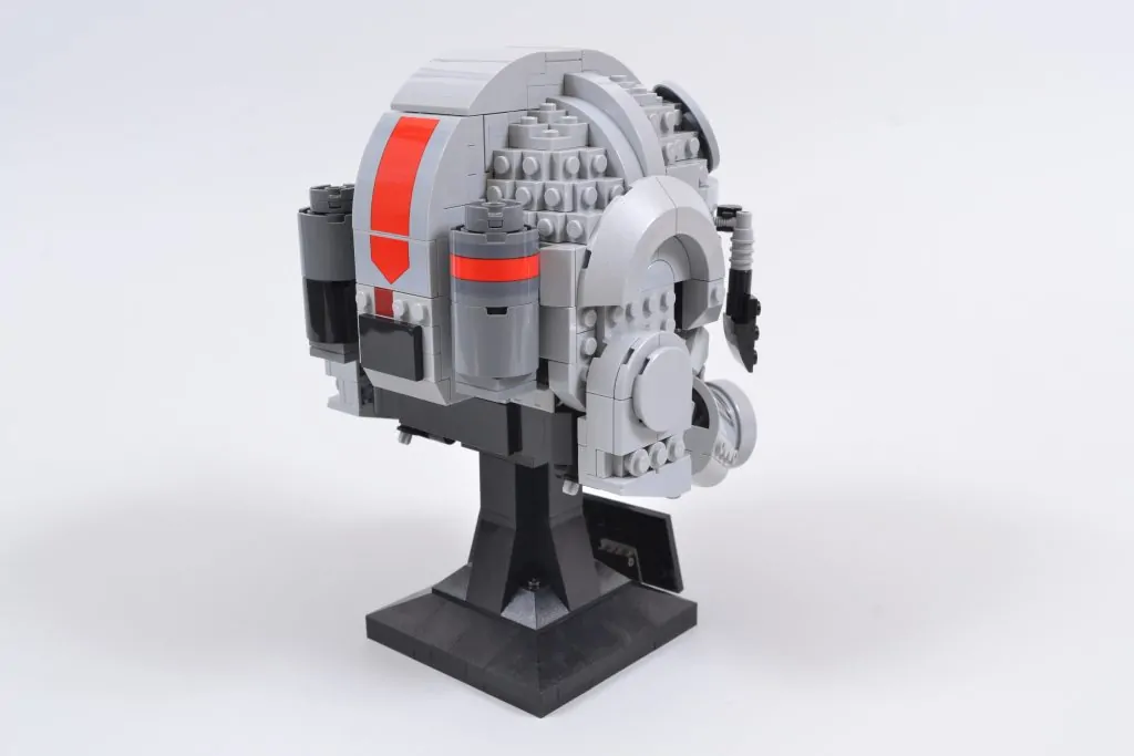 Der AT-AT-Fahrerhelm 75429 ist jedoch nicht nur eine farblich veränderte Version des letzteren. Stattdessen verbessert und erweitert das Set das Design von 2020 und fügt einen markanteren, erhabenen Irokesenschnitt oben, detailliertere Seitenbereiche, ein überarbeitetes Design der seitlichen Lüftungsschlitze und rote Spritzer hinzu, die das fertige Modell bei der Präsentation hervorstechen lassen.
