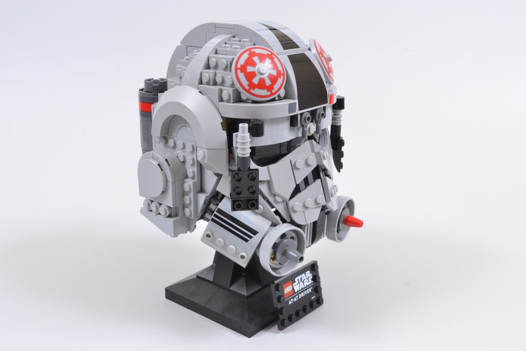 Der AT-AT-Fahrerhelm 75429 hat allerdings auch ein paar kleine Schwächen. Zunächst einmal gibt es eine kleine Auswahl an äußerst kniffligen Aufklebern, die anzubringen sind, und bei manchen davon werden Sie mehr als einmal nach dem Fluchglas greifen müssen.
