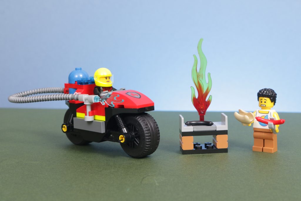 60410 Feuerwehr-Rettungsmotorrad bietet ein 4+ Bauerlebnis für Erstbauer, die ihren Abschluss machen DUPLO und ist ein schnell und einfach zusammenzubauendes Set. Für junge Hände ist es sehr spielbar, für ältere Fans ist der verbrannte Hotdog ziemlich amüsant, auch wenn der Rest des Sets nicht wirklich interessant ist. Vielleicht könnten die großen Motorradteile für etwas verwendet werden, das woanders mit Science-Fiction zu tun hat?