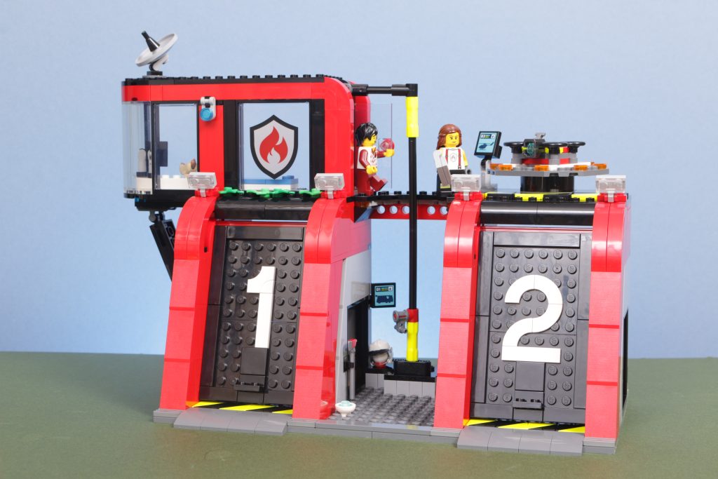 60414 Feuerwache mit Feuerwehrauto ist mit Abstand das interessanteste LEGO City Das Feuerwehrset wird im Januar 2024 auf den Markt kommen, dank einer modernen Variante der traditionellen Zweitürstation, die die LEGO Group über die Jahre angeboten hat. Es ist ein interessanter Aufbau, der ein interessantes Modell schafft, das gut aussieht und sehr spielbar ist. Es ist nicht perfekt, insbesondere weil das Feuerwehrauto nicht in die Station passt, und die Drohne, die einen Hubschrauberlandeplatz benötigt, wirkt albern, aber insgesamt ist dies eine einzigartige und neue Art von Feuerwache. Die Minifiguren bringen echten Charakter und Abwechslung in die Aufstellung, und der Hund ist das Beste.
