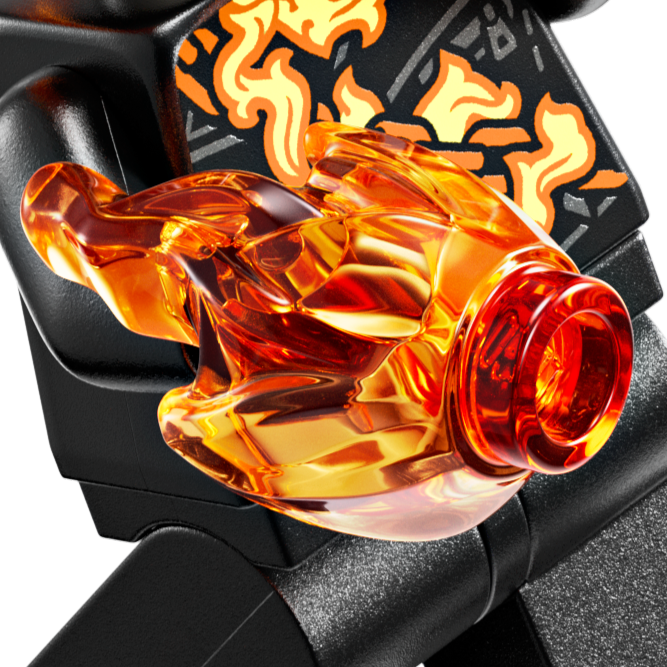 In transparentem Orange (der bisher einzigen Farbe) kann man damit Johnny Storm darstellen. 76316 Fantastic Four vs. Galactus Konstruktionsfigur Es schleudert einen Feuerball nach vorn. In transparentem Blau ist es für Iron Man ähnlich nützlich, aber abgesehen von Minifiguren kann man dieses Element auch an der Unterseite von Platten für Mikroraketen befestigen. Es ist derzeit exklusiv für 76335 Spider-Man vs. Ghost Rider MotorradAber dieses Set kostet wenigstens nur 8.99 £ / 9.99 $ / 9.99 €.