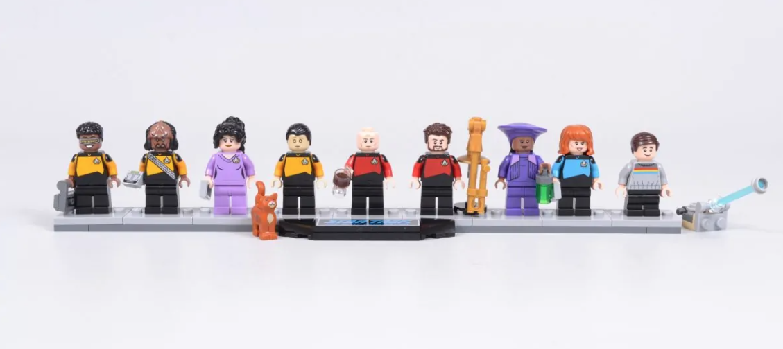 Das LEGO Icons Das Modell enthält die komplette Crew aus Star Trek: The Next Generation mit ihren charakteristischen Accessoires. Zu den beeindruckenden Minifiguren gehören Captain Jean-Luc Picard, Commander William Riker, Lieutenant Commander Geordi La Forge, Lieutenant Commander Data, Lieutenant Worf, Dr. Beverly Crusher, Counsellor Deanna Troi, Guinan und der allseits beliebte Teenager Wesley Crusher.