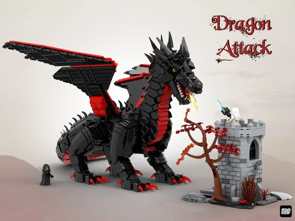 Nicht alle LEGO Castle-Modelle müssen echte Festungen sein, und die von _TLG_ Drachenangriff ist ein großartiges Beispiel für etwas Abwechslung im BrickLink Designer-Programm. Dies ist nicht das erste Mal, dass sie dieses riesige feuerspeiende Biest für das Programm eingereicht haben, aber dieses Mal haben sie das Design des Drachens optimiert und einen kleinen dazugehörigen Turm hinzugefügt, um ihm ein etwas mittelalterlicheres Flair zu verleihen.