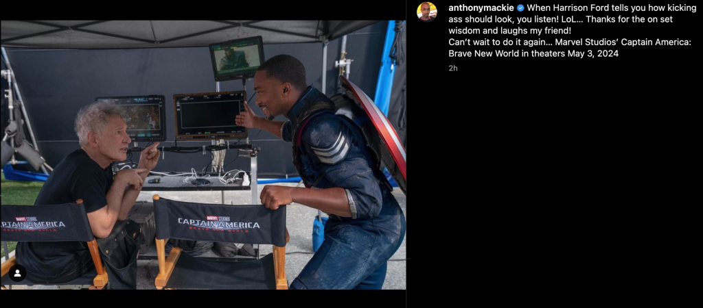 Mackie, der in dem Film Captain America spielt (nachdem seine Figur Sam Wilson den Titel von Steve Rogers von Chris Evans geerbt hat), hat auf seiner Seite ein Foto gepostet, auf dem er im Kostüm mit Harrison Ford plaudert Instagram Buchseite. Ford spielt Thunderbolt Ross und übernimmt die Rolle des verstorbenen William Hurt.