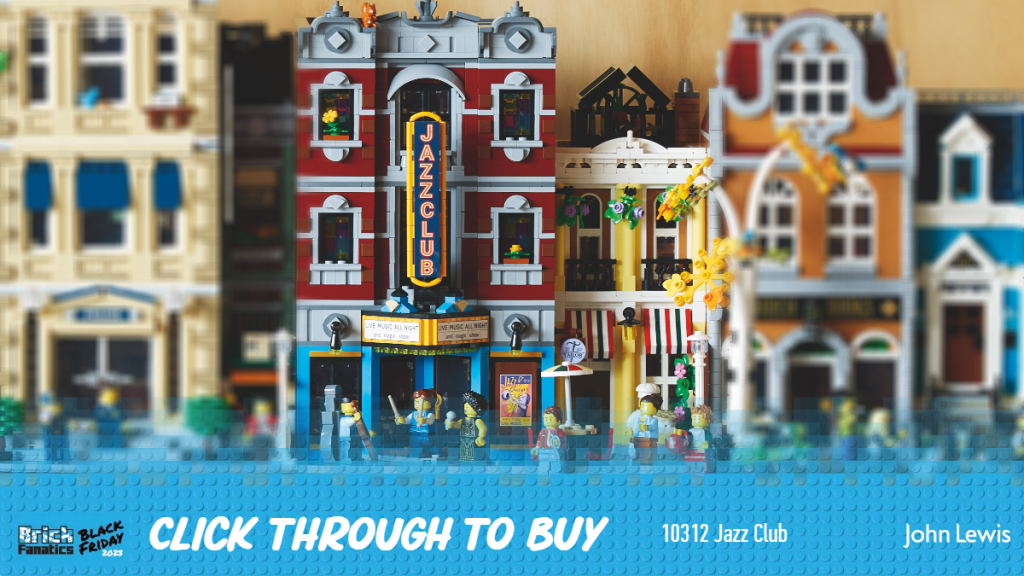 Eines der neuesten Modulgebäude – 10312 Jazzclub – gibt es auch 50 £ Rabatt. Das LEGO Das modulare Gebäude verfügt über einen dreistöckigen Jazzclub mit Büro und Umkleideraum. Nebenan befindet sich eine Pizzeria mit einer Schneiderwerkstatt im Obergeschoss sowie einem Gewächshausgarten auf dem Dach.