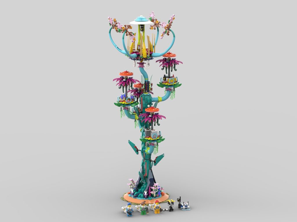 enowicki10's Outta This World Baumhaus würde nicht fehl am Platz aussehen in der LEGO TRAUMZzz Thema und sieht, obwohl es technisch gesehen ein Gebäude ist, eher wie ein magischer Baum als wie eine Struktur aus. Es erzählt die Geschichte von drei Astronauten, die eine geheimnisvolle Welt erforschen und auf diesen farbenfrohen Baum stoßen, mit verschiedenen Ebenen, die mit den Jetpacks der Minifiguren erreicht werden können.