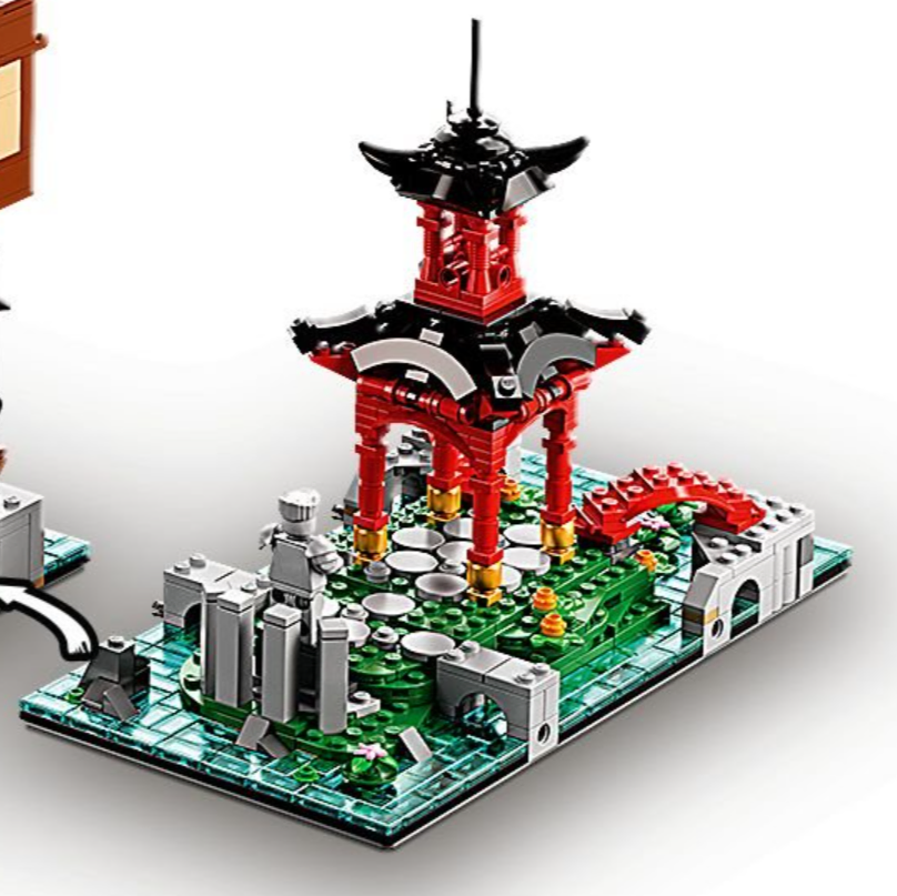 Der Schreininselabschnitt von 71741 NINJAGO City Gardens verfügt über keinen oberen Brückenabschnitt und ist so konzipiert, dass es sich links von der Hauptstruktur befindet. Im Jubiläumsbau sind zwei abnehmbare Balkone vorgesehen, um die oberen Gehwege abzuschließen.