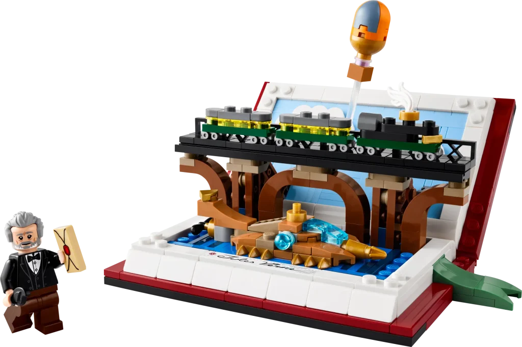 40690 Hommage an Jules Vernes Bücher war einst die größte LEGO Tributgeschenk beim Kauf, eine Hommage an drei Titel von Jules Verne. Das U-Boot Nautilus steht für „Zwanzigtausend Meilen unter dem Meer“, der Zug ist eine Anspielung auf „In 80 Tagen um die Welt“ und der Ballon ist eine Hommage an „Fünf Wochen im Ballon“.