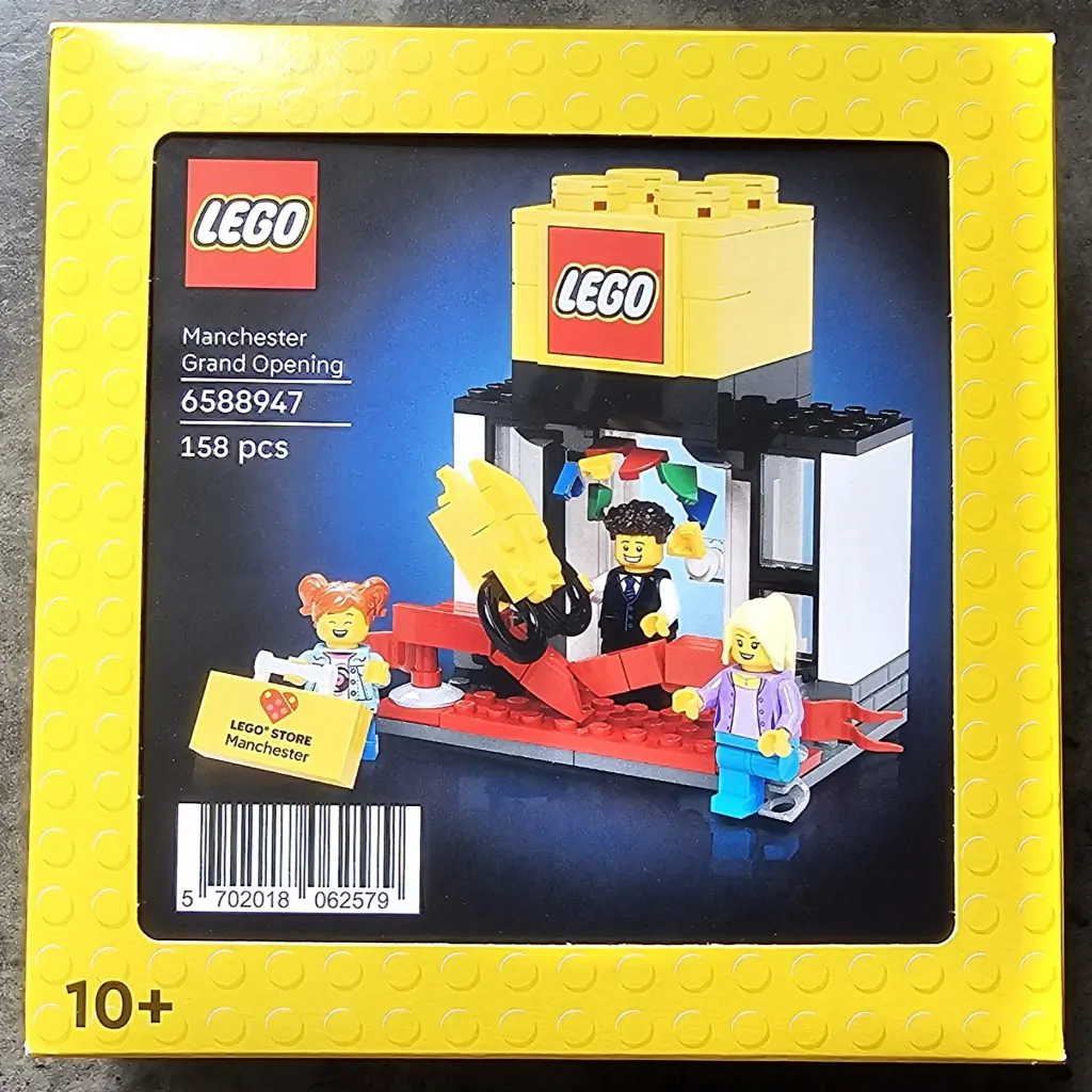 Bei der Wiedereröffnung der Filialen in Manchester wurde auch eine seltene Kachel verschenkt, die bereits bei der Eröffnung des Trafford Centre vergeben wurde. Bei dieser Veranstaltung war das Set „Manchester Grand Opening“ (6588947) nicht enthalten, dafür gab es aber 40528 LEGO Stattdessen Marken-Einzelhandelsgeschäft.