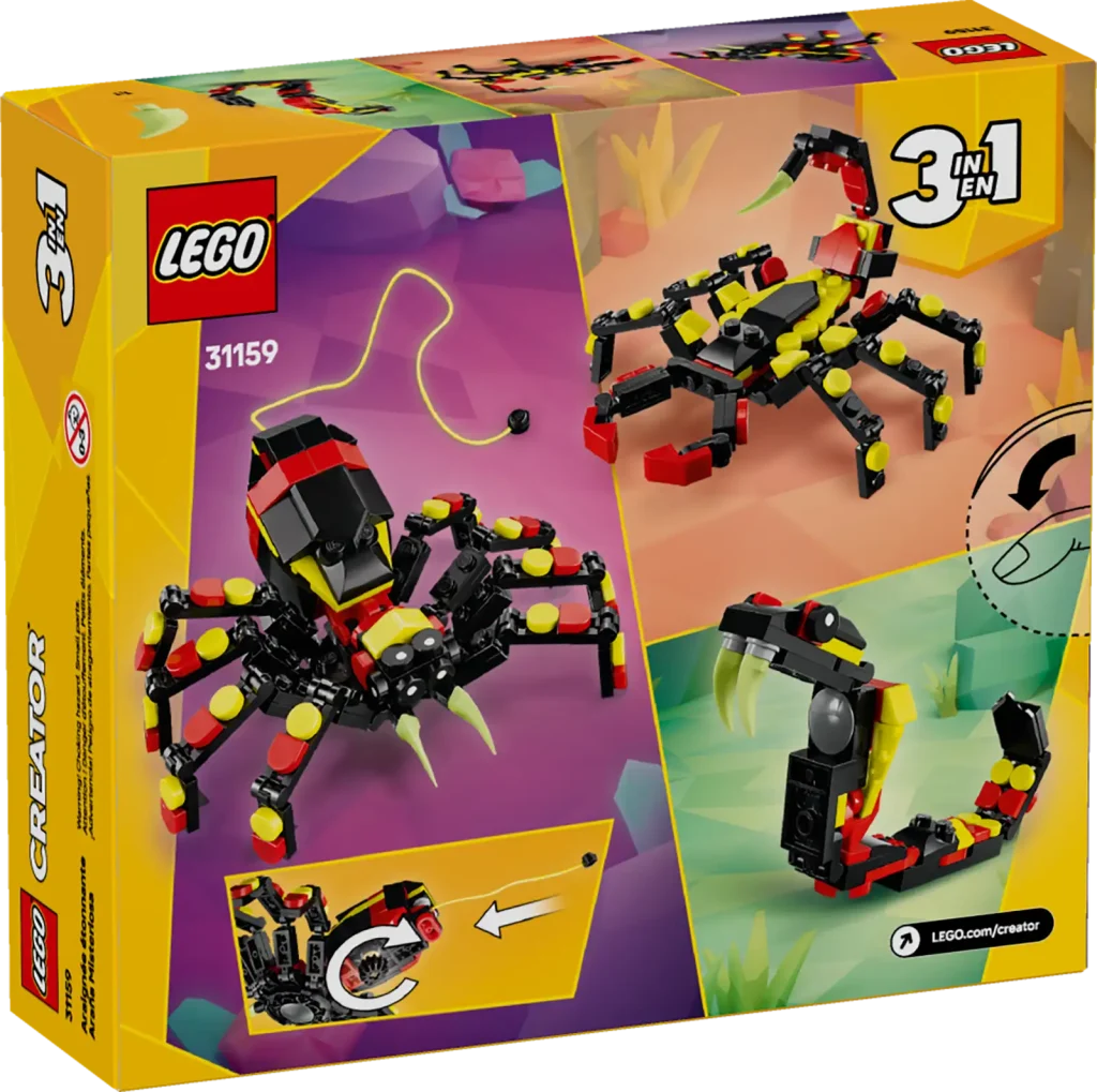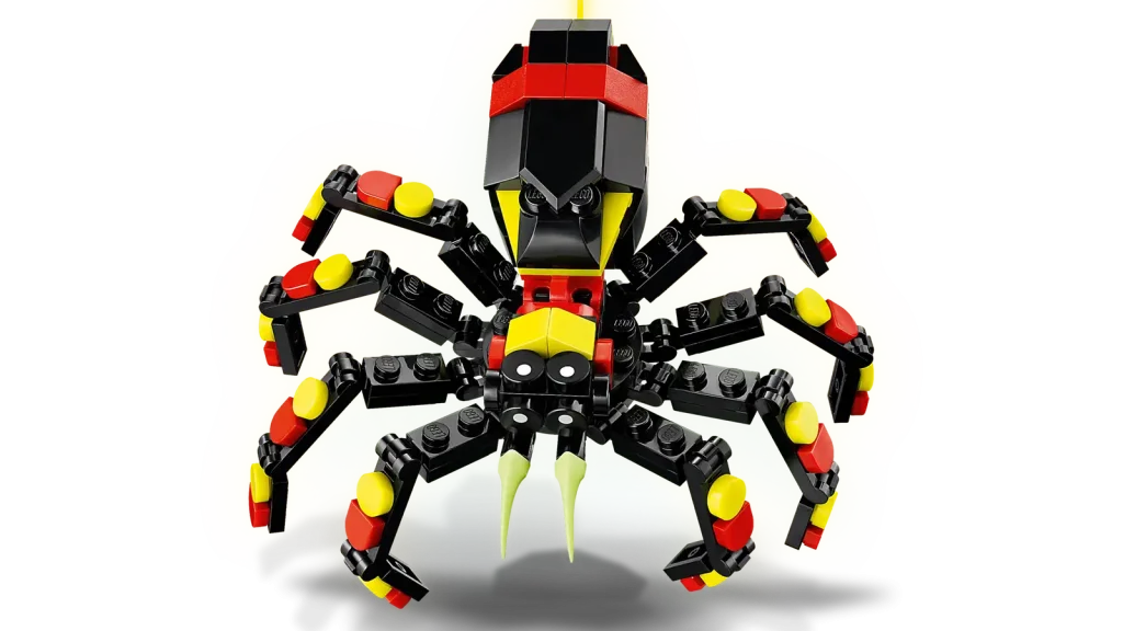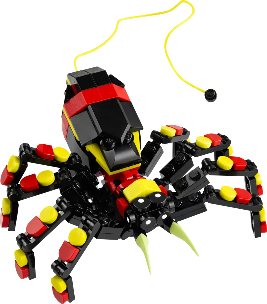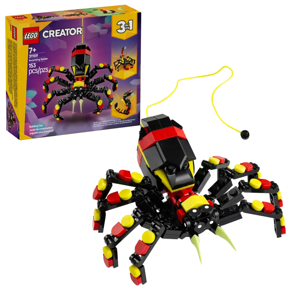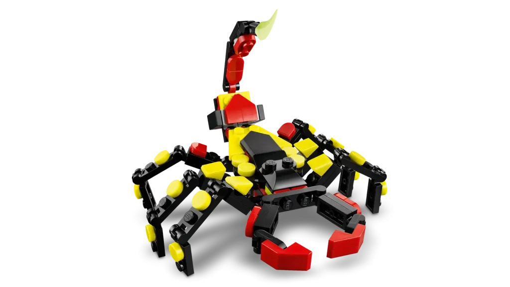 Als Erstes gibt es ein farbenfrohes Set, aus dem Sie das Krabbeltier Ihrer Wahl bauen können: eine Spinne, einen Skorpion oder eine Schlange. 31159 Wilde Tiere: Überraschende Spinne ist eines der kleinsten Sets, bietet aber dennoch einige Spielfunktionen, darunter ein Stück Schnur, das wie ein Netz fungiert, sodass Sie Ihre aus Steinen geBauene Spinne an anderen Sets oder Regalen aufhängen können.