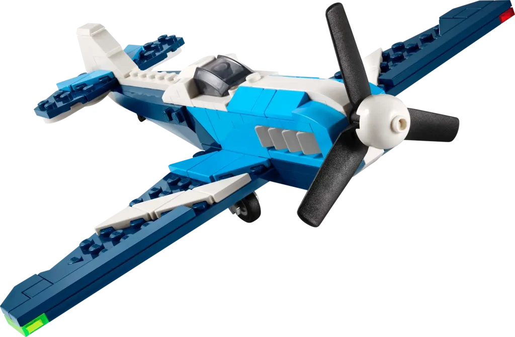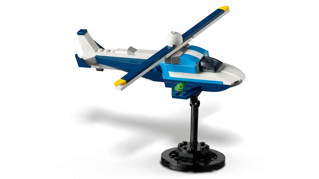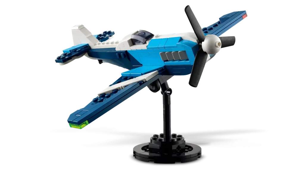 Als nächstes folgt eines der wenigen unbelebten Motive der Welle, 31160 Flugzeuge: Rennflugzeug. Sie können zwischen drei Arten von Luftfahrzeugen wählen, die alle auf einem aus Steinen geBauenen Ständer platziert werden können und so leicht ausgestellt werden können.