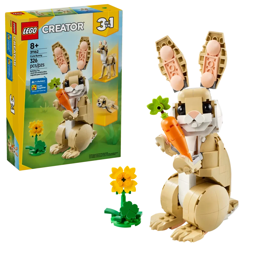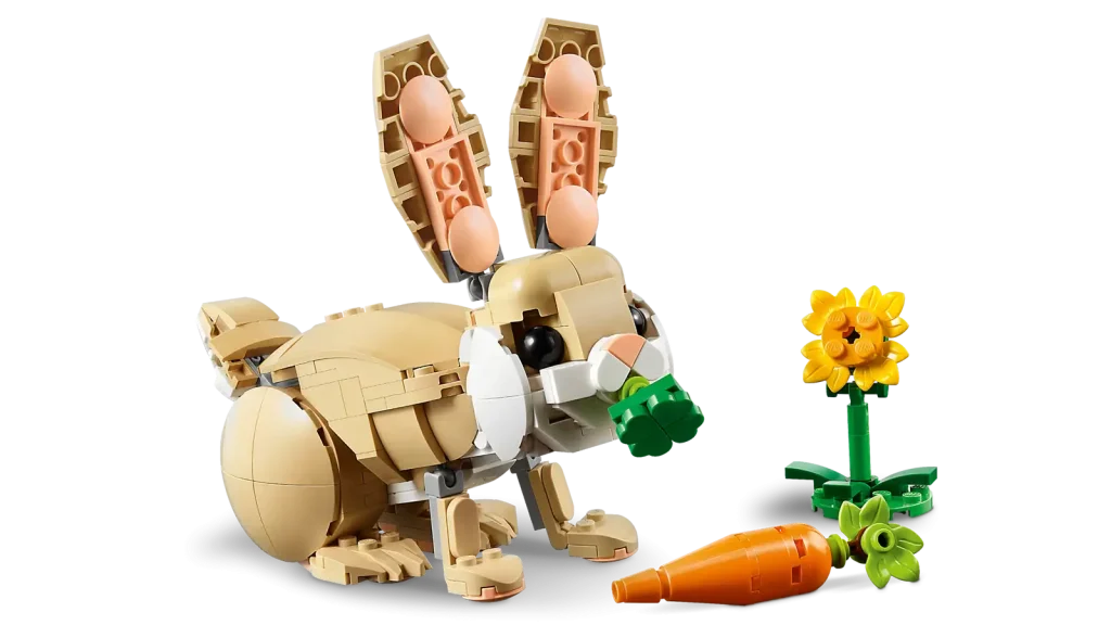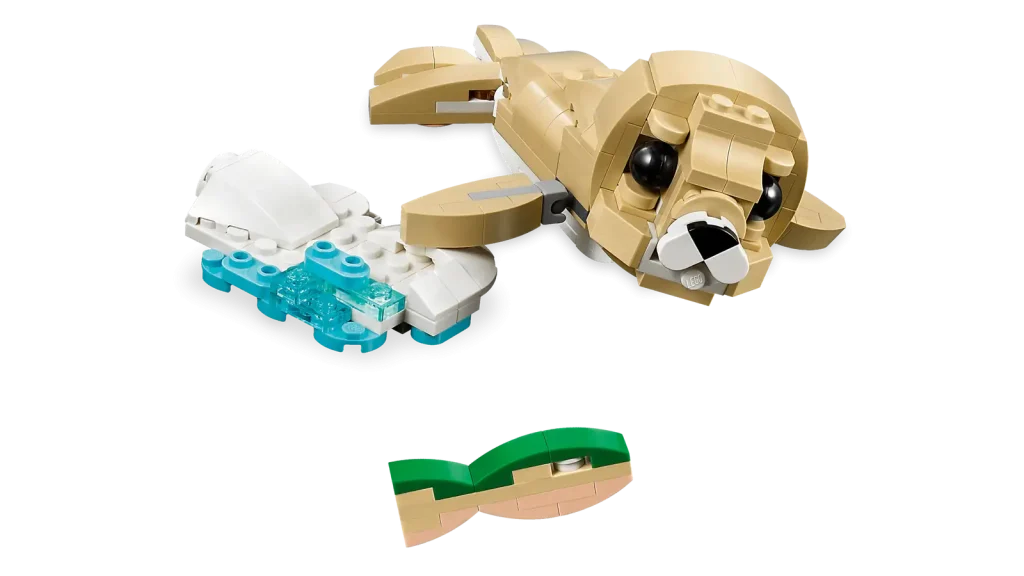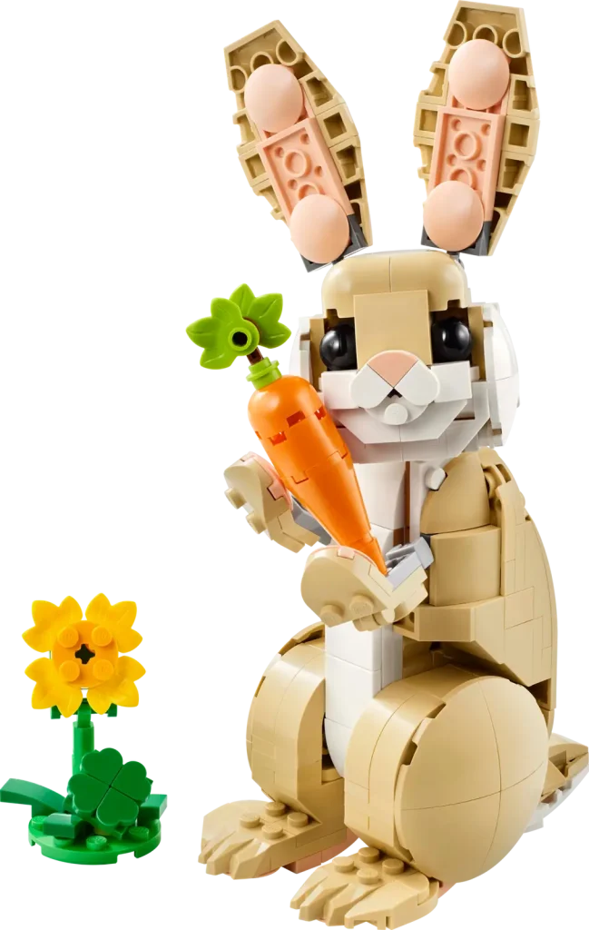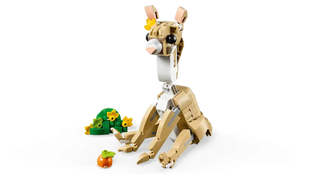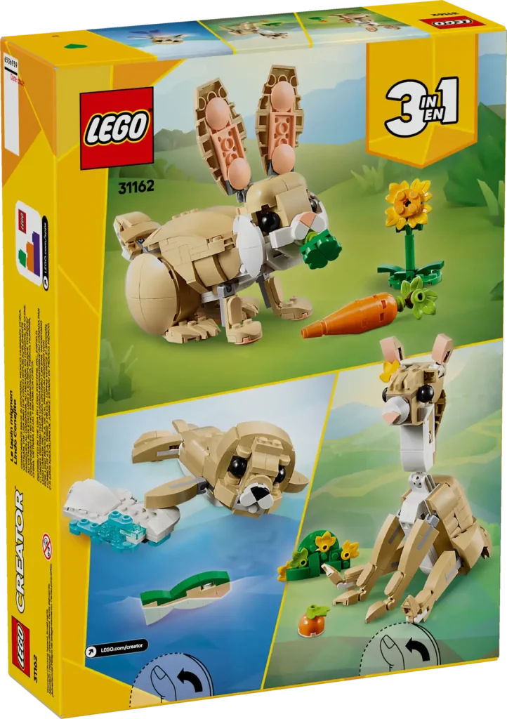 Ein weiteres Set im Taschenformat, 31162 Süßer Hase verwendet Sand- und weiße Elemente, um Bauoptionen für ein Häschen, ein Lama und ein Robbenbaby anzubieten. Jede Option verfügt über ein eigenes Zubehörset, das zu ihrer natürlichen Umgebung passt.