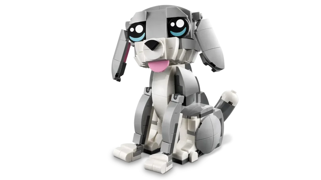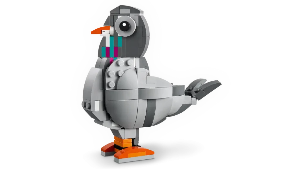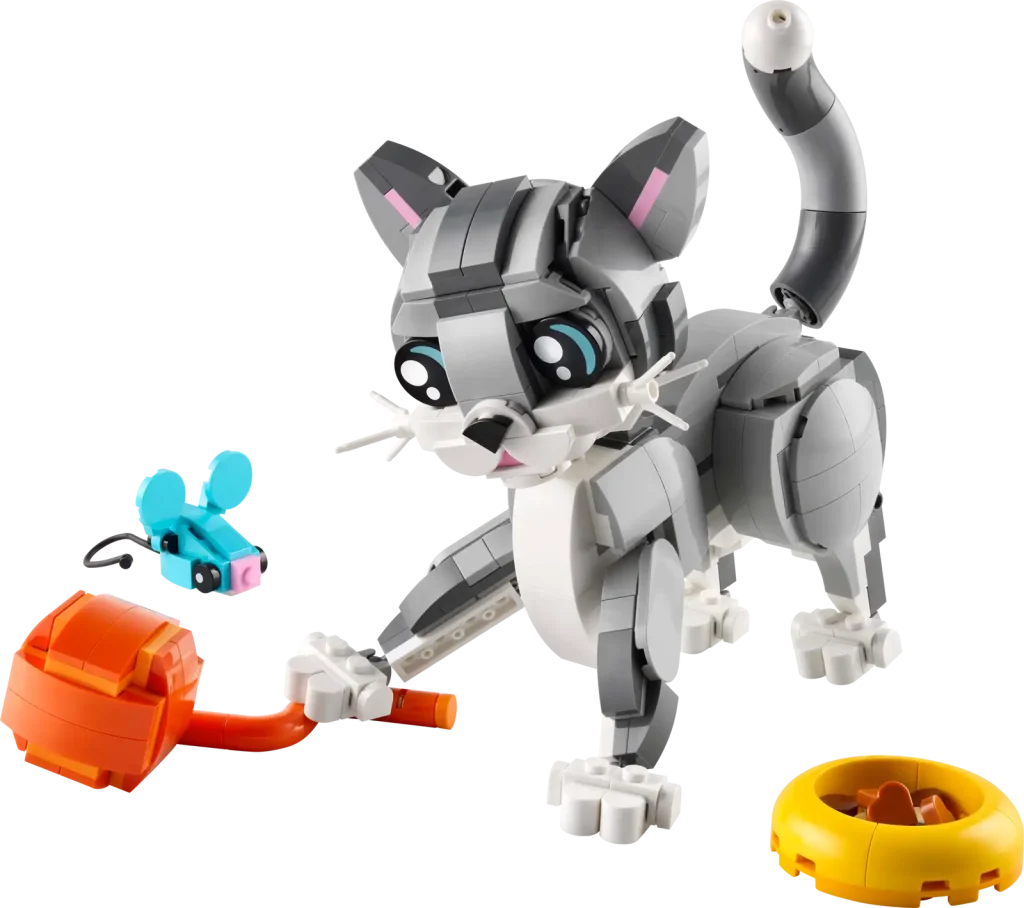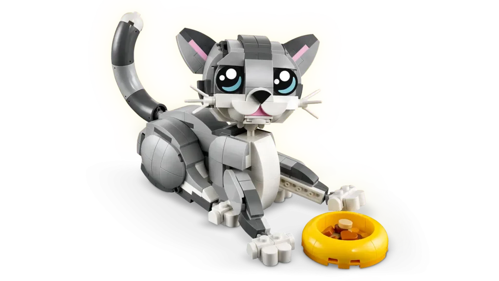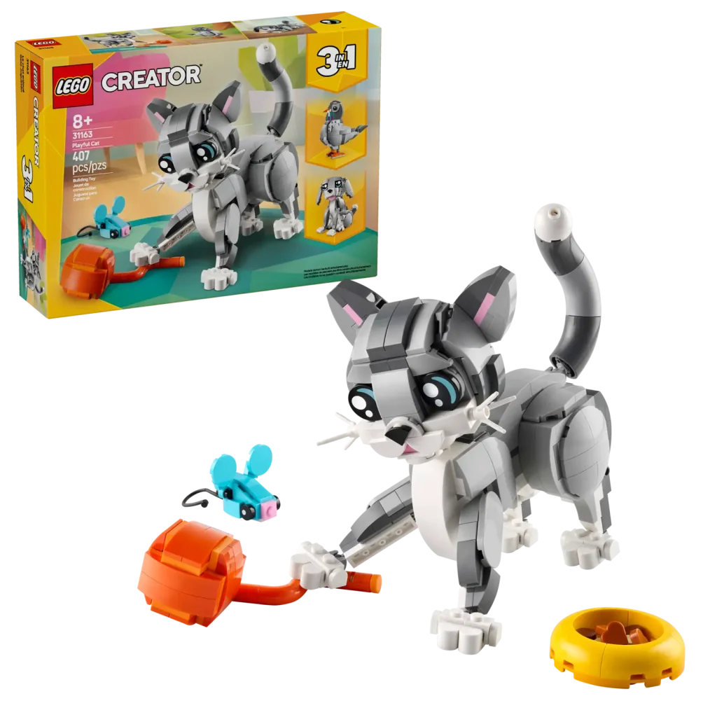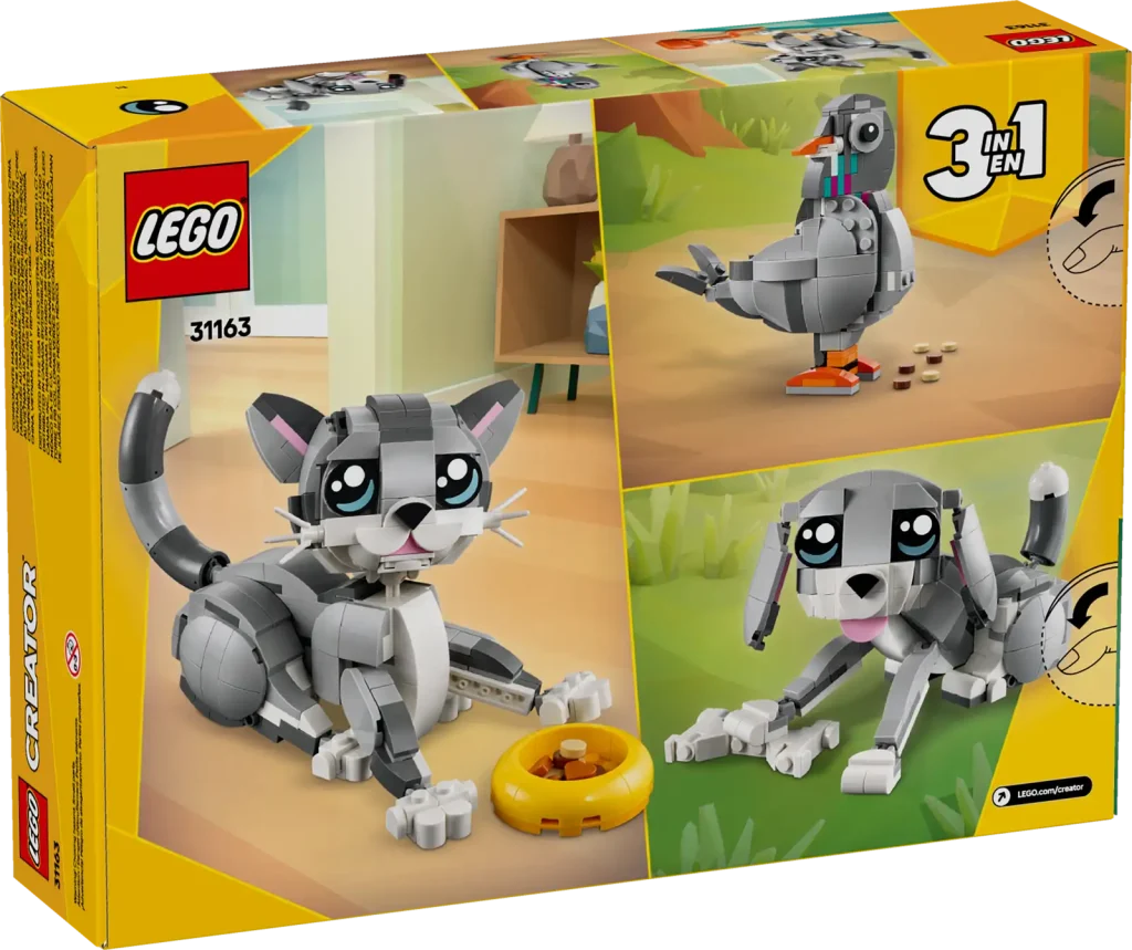 Bei ähnlichem Preis und ähnlicher Größe 31163 Verspielte Katze bietet die Wahl zwischen drei alltäglichen Tieren: einem Kätzchen, einem Welpen oder einer Taube. Das graue Farbschema wird durch Farbspritzer aufgelockert und jedes Tier hat einen aus Steinen geBauenen Snack zum Genießen.