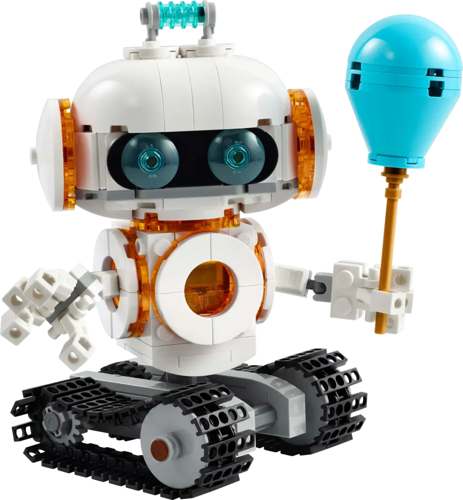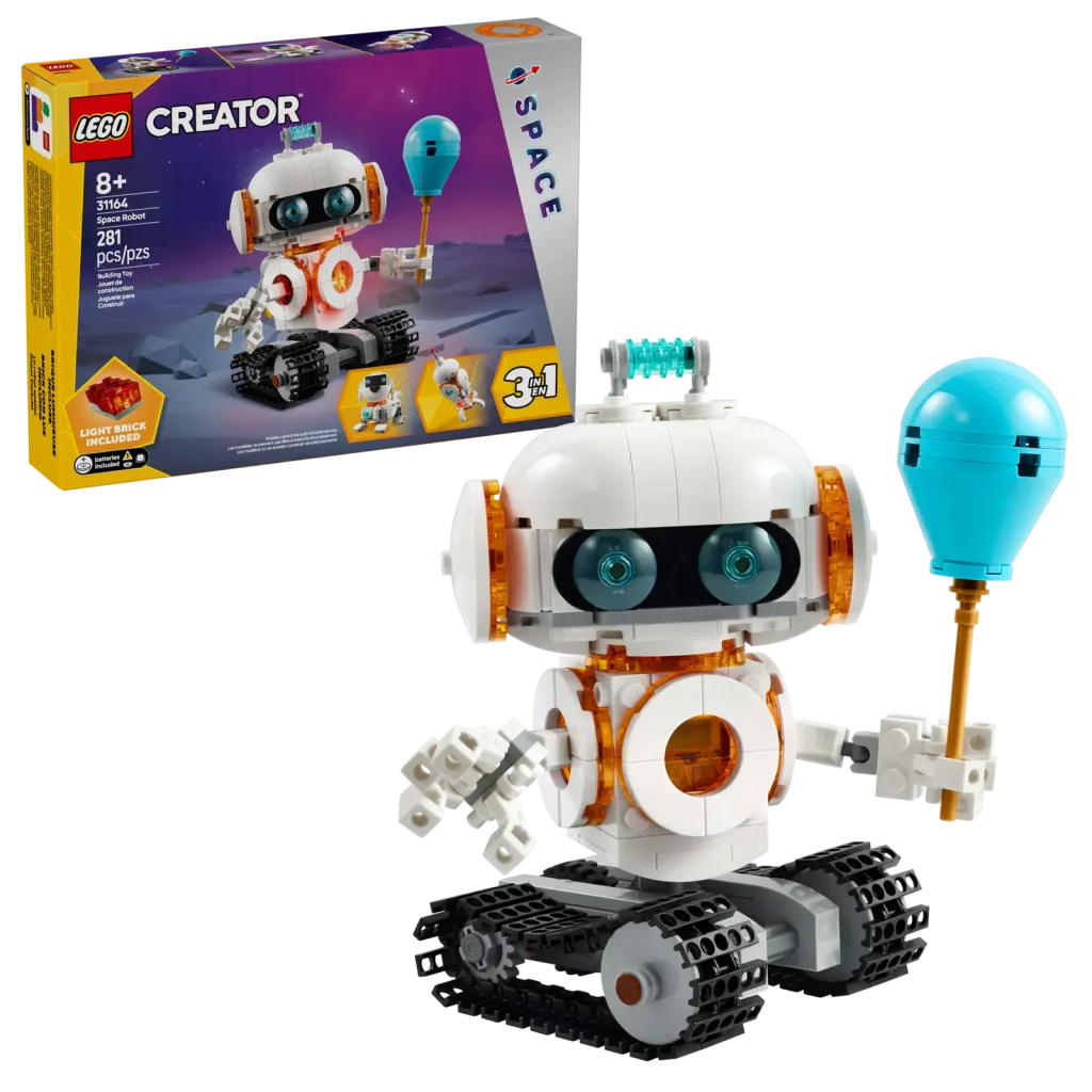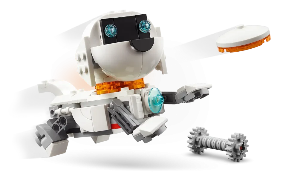 Ein Beweis dafür, dass die themenübergreifende Weltraumsammlung von 2024 auch 2025 fortgesetzt wird. 31164 Weltraumroboter bietet drei Optionen für Science-Fiction-Roboter, darunter einen niedlichen Roboterhund. Jedes Modell hat seine eigenen Spielfunktionen, von beweglichen Gliedmaßen bis hin zu Roboterknochen aus Steinen.