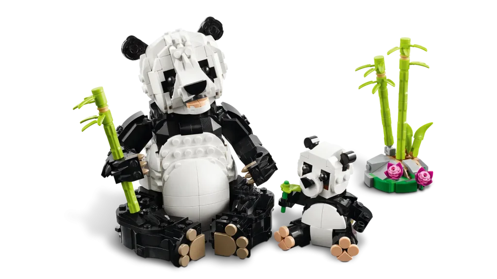 31165 Wildtiere: Pandafamilie ist ein weiterer Eintrag in der Untersammlung „Wild Animals“ und zeigt ein Panda-Duo, ein Orca-Paar und einen Pinguin mit Küken. Die höhere Stückzahl bedeutet auch, dass Sie mehr Landschaft erhalten als bei einigen der anderen kleineren Sets in dieser Welle.