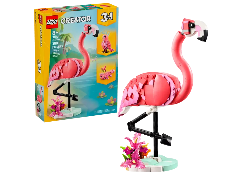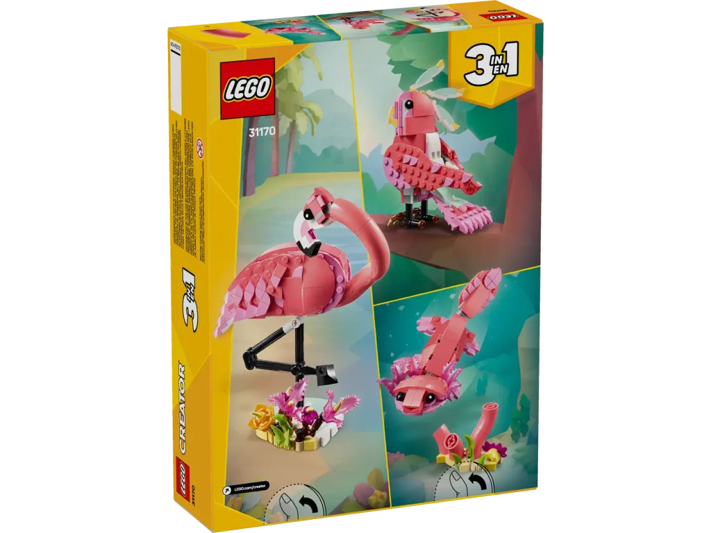 Zu guter Letzt (obwohl es die wenigsten Bilder hat) 31170 Wilde Tiere: Rosa Flamingo kann auch zu einem Pelikan oder einem Axolotl werden, wobei jedes Tier in unterschiedlichen Rosa- und Weißtönen nachgebildet werden kann.
