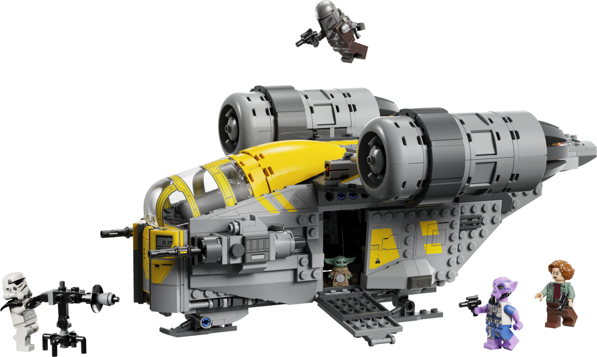 Zunächst einmal sind die Farben leuchtender in 75447 Das Rasiermesserwappen als bei 75292, was dem frisch gestrichenen gelben Anstrich entspricht, den wir auf dem kurzen Blick im Trailer auf den Rumpf erhaschen konnten. Die Farbe scheint größtenteils aufgeklebt und nicht gedruckt zu sein, obwohl die komplett gelben Bereiche auf dem Schiffsoberteil die beiden Varianten gut unterscheiden und sich von der vorherigen Version abheben. LEGO Star Wars' Ruf für komplett graue Konstruktionen.