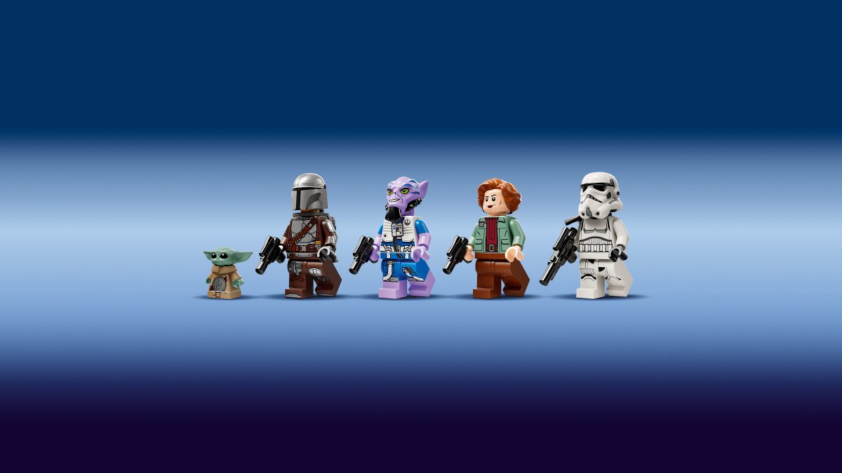 Beim Vergleich der Minifiguren und Charaktere fällt auf, dass beide Sets die gleiche Anzahl enthalten: vier Minifiguren plus Grogu. Abgesehen von Din Djarin handelt es sich jedoch nicht um dieselben Charaktere. Anstelle von Greef Karga, einem Scout Trooper und IG-11 enthält das Set 75447 „The Razor Crest“ Colonel Ward, Zeb Orrelios und einen Imperial Remnant Stormtrooper.