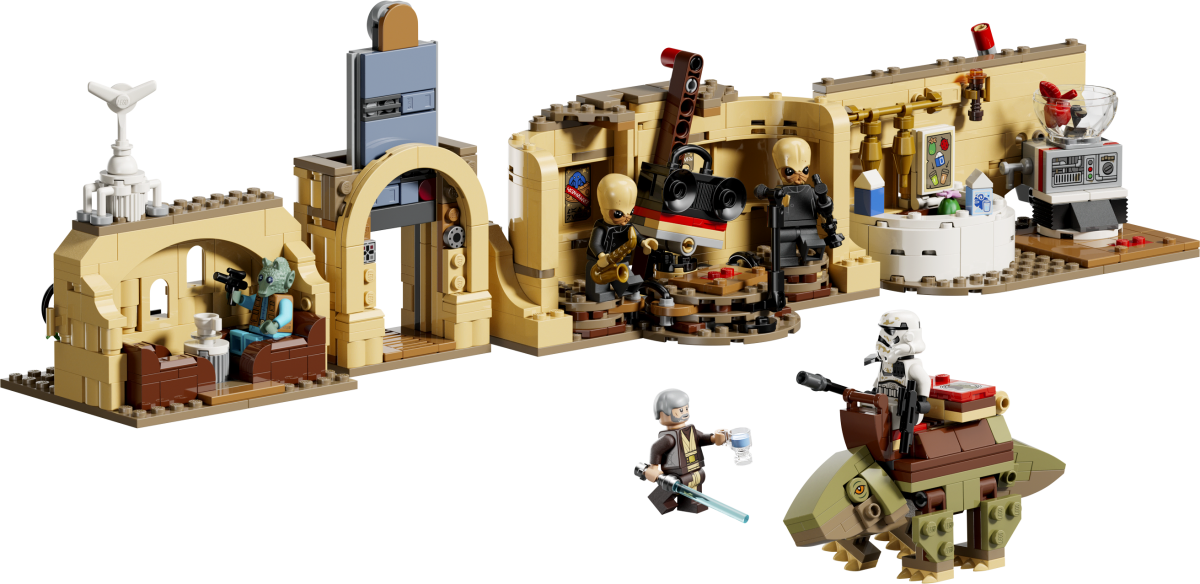 Die SMART-Baustein Die einzelnen Slots in diesem Set sind nicht allzu offensichtlich, und man kann eigentlich nur dank der folgenden Information erkennen, dass die Bühne Platz für einen Slot bietet: Technic Teile. Selbst der Platz für den Dewback ist nicht übermäßig auffällig, aber dennoch vorhanden. SMART Play hat das Setdesign der Mos Eisley Cantina sicherlich beeinflusst, jedoch nicht in monumentaler Weise.