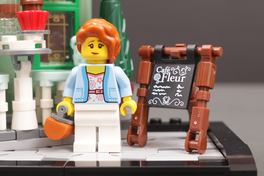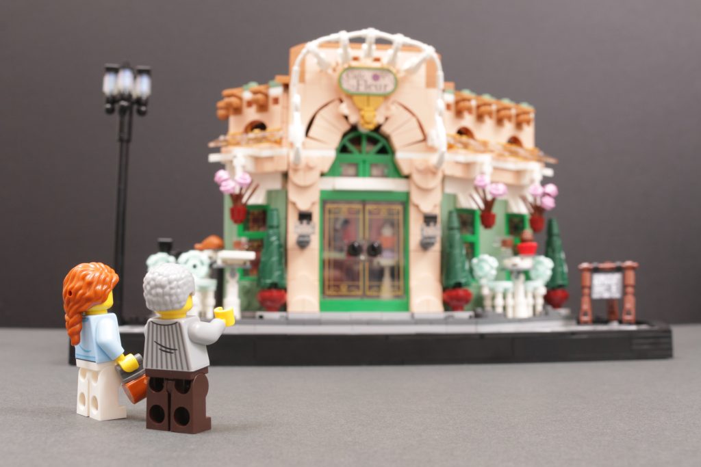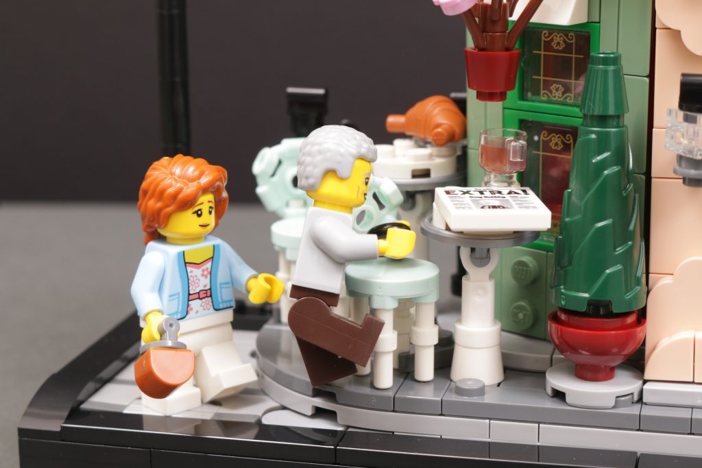 Beim Zusammenstellen 10362 Französisches Café für unsere Kritik, wir haben versucht, der Szene ein paar Minifiguren hinzuzufügen, und … es hat nicht so gut funktioniert, wie Sie sich das vorstellen. In diesem Ausstellungsmodell sind klare Möglichkeiten zum Geschichtenerzählen eingeBauen, die durch Minifiguren zum Leben erweckt werden könnten – ein junges Paar, das an den Tischen im Freien Gebäck isst, ein Geschäftsmann, der auf seinem morgendlichen Weg zur Arbeit vorbeigeht, ein Kellner, der mit Tabletts voller Getränke herumflitzt – aber letztendlich sind sie nur Ihrer Fantasie überlassen.