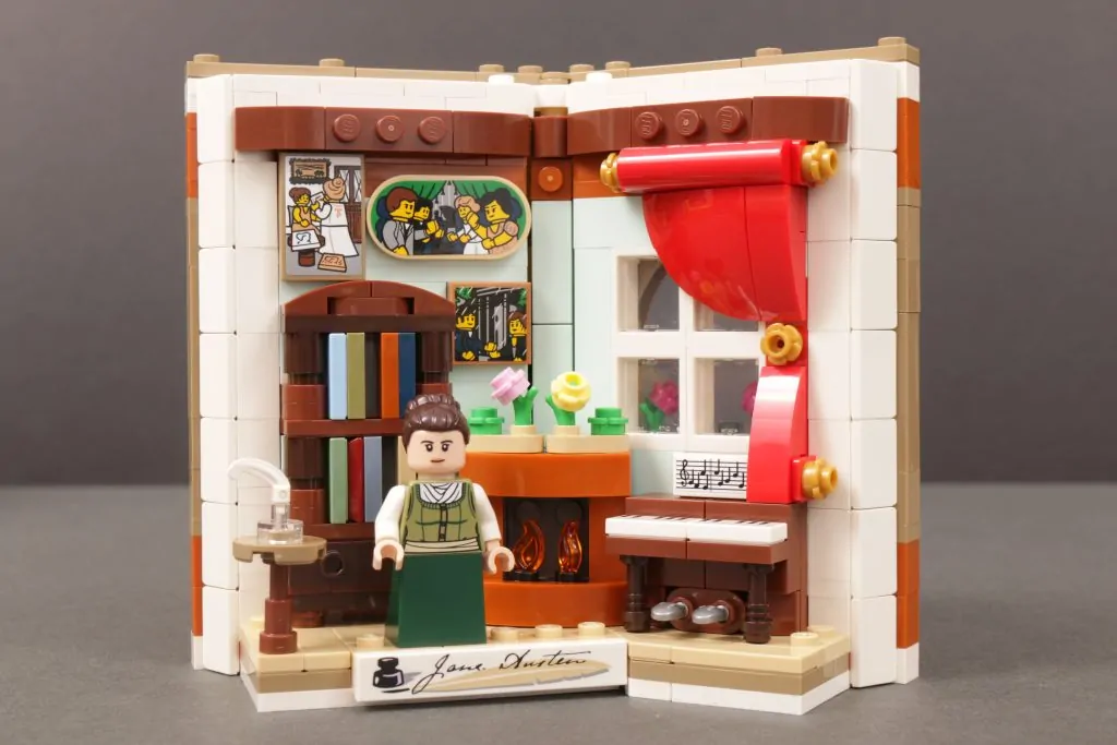 Für diesen Einkauf erhalten Sie ein 361-teiliges LEGO Ein Set, das einen Ausschnitt eines Wohnraums voller kleiner Anspielungen und Details auf das Werk der Pionierautorin Jane Austen bietet. Sie schrieb in ihrem kurzen Leben sechs bedeutende Romane, darunter „Verstand und Gefühl“, „Stolz und Vorurteil“, „Mansfield Park“ und „Emma“ (diese vier wurden innerhalb von fünf Jahren anonym veröffentlicht). Obwohl sie vor über 200 Jahren starb, waren ihre Werke selten vergriffen und wurden seitdem unzählige Male für Bühne, Fernsehen und Film adaptiert.