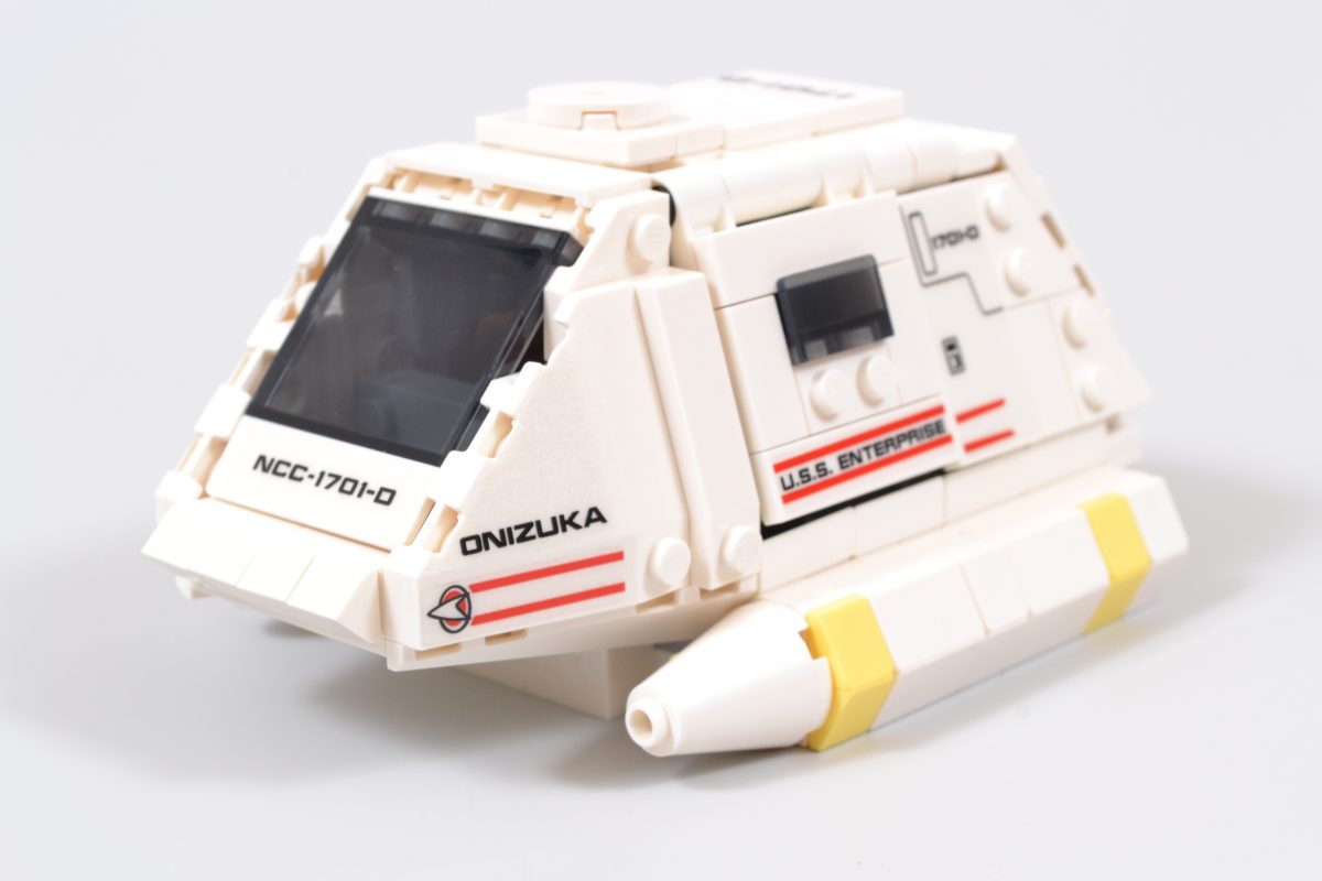 Die LEGO Star Trek-Version des kleinen Raumschiffs basiert speziell auf der Onizuka, die posthum nach Ellison Onizuka benannt wurde, einem der Astronauten, die 1986 an Bord der Raumfähre Challenger ums Leben kamen. Dieser Name wird auch auf zwei anderen Figuren erwähnt. 40768 Shuttlepod Typ 15Die 11 Aufkleber enthalten keine gedruckten Teile im Gratisgeschenk, ebenso wie ein LCARS-Display mit ein seltsames Sternzeitdatum und eine schematische Darstellung eines romulanischen Warbirds der D'Deridex-Klasse.