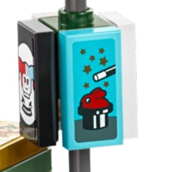 Ein Spybotics-Banner ist ebenfalls enthalten. Es verwendet das gleiche stilisierte Logo wie die älteren Sets, jedoch mit Ninjargon anstelle des Standardschriftzugs. Wie üblich NINJAGO City erweist sich als eine Fundgrube für klassisch Ostereier mit LEGO-Motiv.