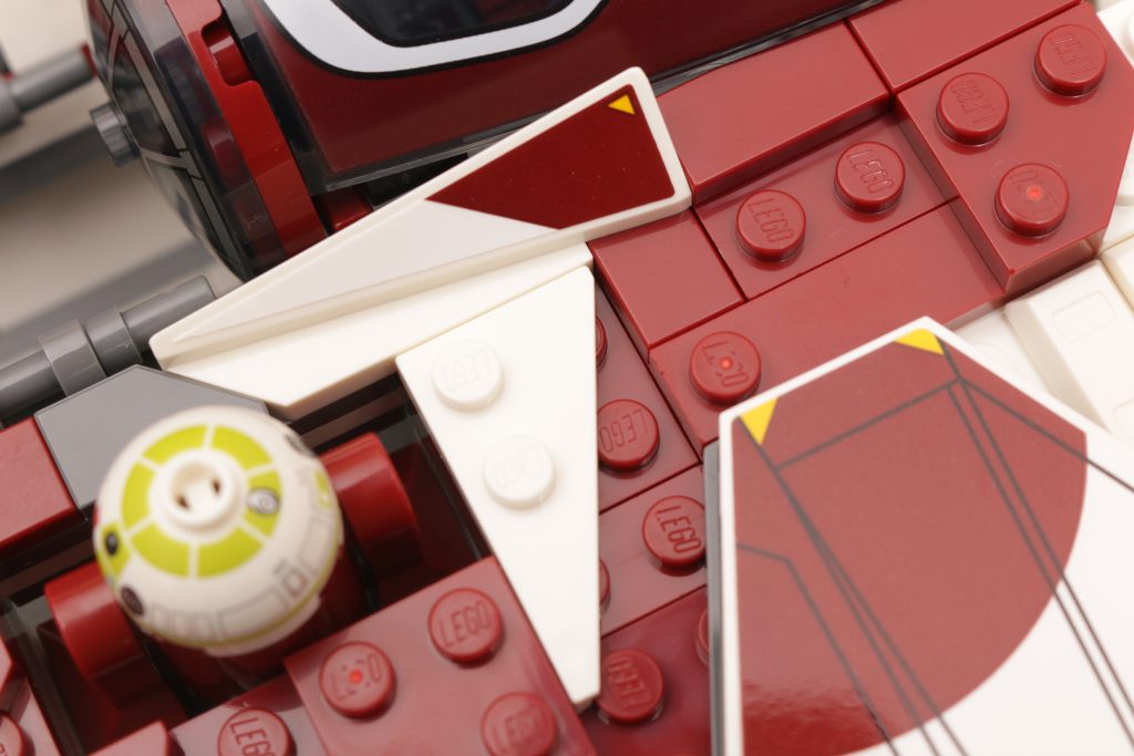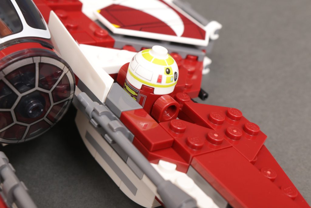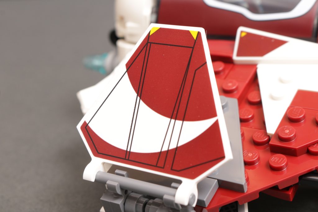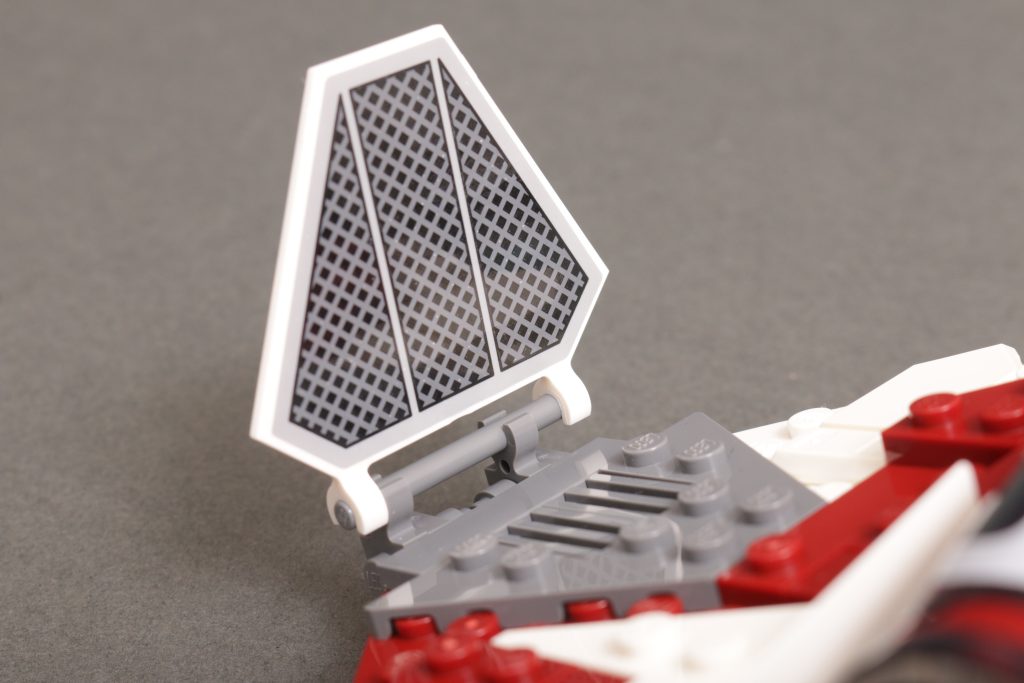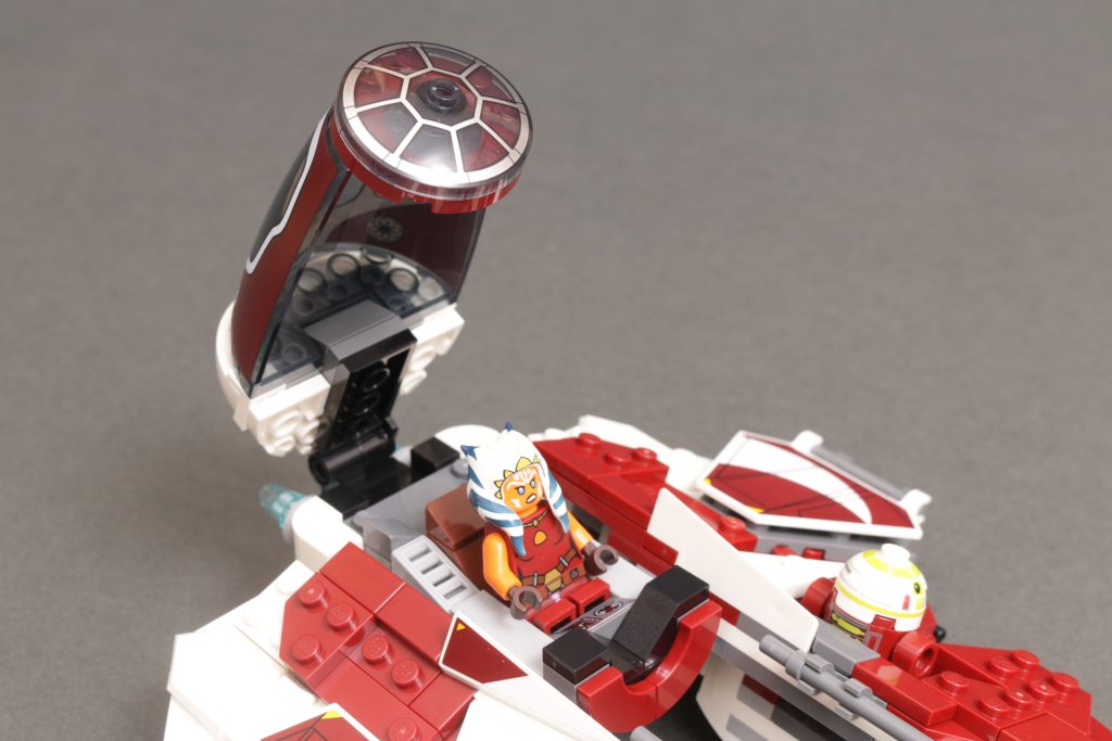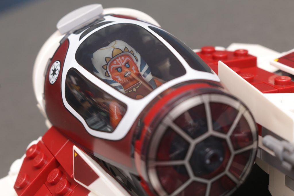 75401 Ahsokas Jedi-Abfangjäger profitiert enorm von dem schicken neuen Cockpitteil mit hochwertigem Aufdruck (der weiße Aufdruck ist deutlich kräftiger als beispielsweise beim Lamborghini Countach 76908). Die verbesserte Konstruktion rund um das Cockpit und die Art und Weise, wie es sich öffnet und schließt, steigern zudem die Wertigkeit des bedruckten Teils, da es einen Mechanismus modernisiert, den die vorherigen Interceptors hatten.