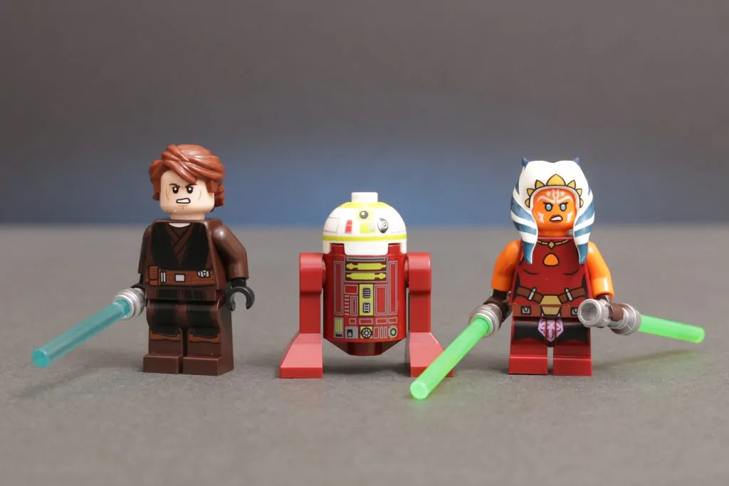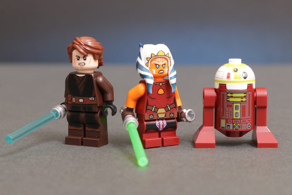 Und auch die Minifiguren bieten uns einige bekannte Gesichter, von denen wir alle sicherlich inzwischen mindestens eine in unserer Sammlung haben, aber in sehr schönen, verbesserten Designs. Ahsoka profitiert stark von den bedruckten Beinen mittlerer Größe, und Anakins dunkelbraune Basis seines gesamten Outfits verleiht der sonst überarbeiteten Minifigur ein wenig neues Leben. Und obwohl Droiden nicht immer die interessantesten Charaktere sind, sieht R7-A7 in Druck und Design dank eines feinen Drucks und einer cleveren Farbauswahl besonders schick aus.